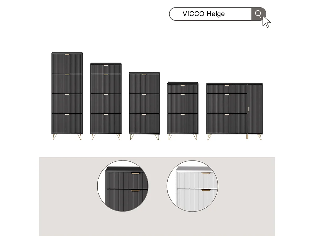 Schuhschrank 80x23.5x131 cm - mit drei großen Klapptüren - mit 2 Schubladen - schwarz + weiß