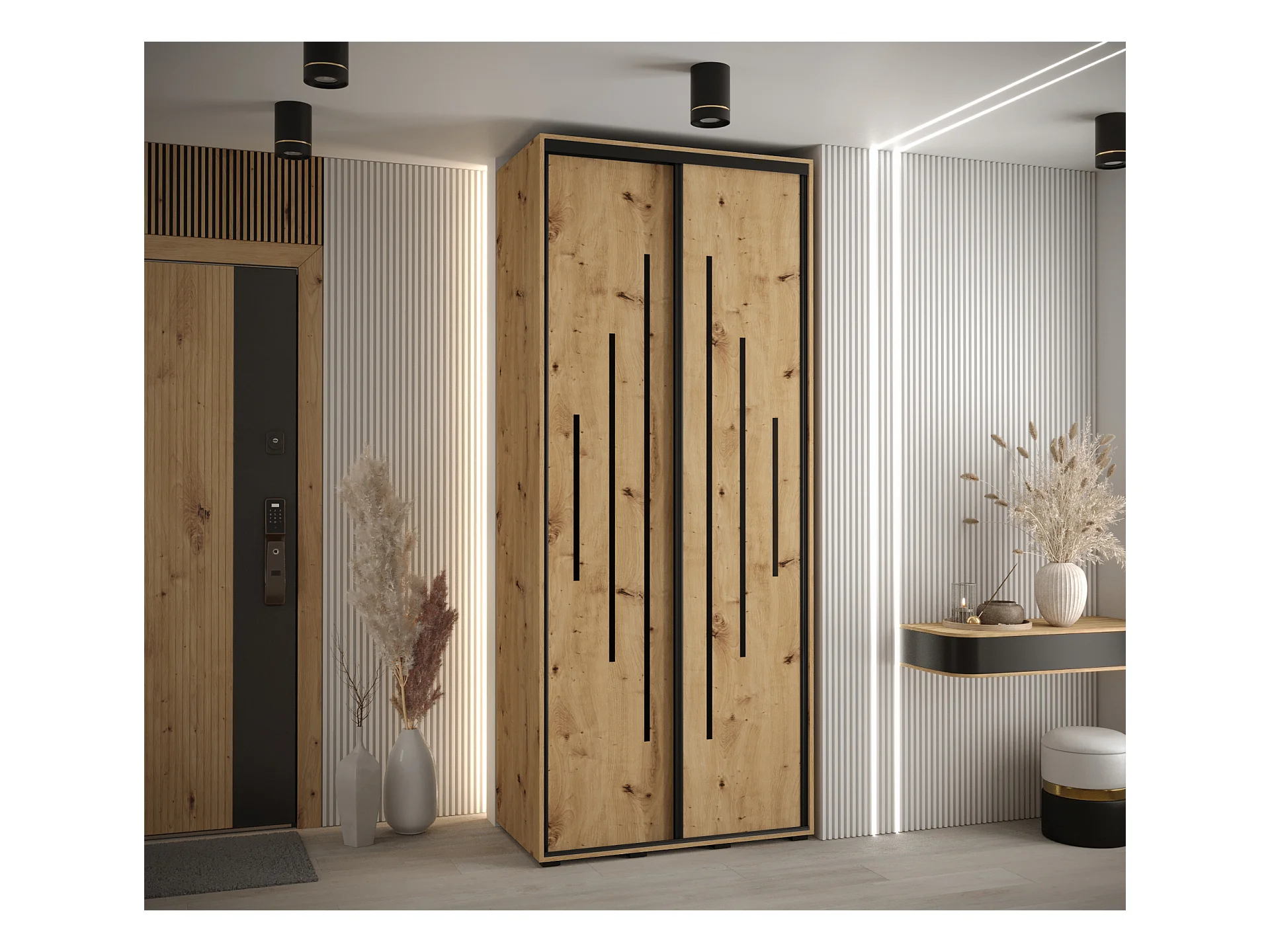 SCHWEBETÜRENSCHRANK DAVOS 2 235,2/100/60 2-türig (Artisan/Artisan/Schwarz)