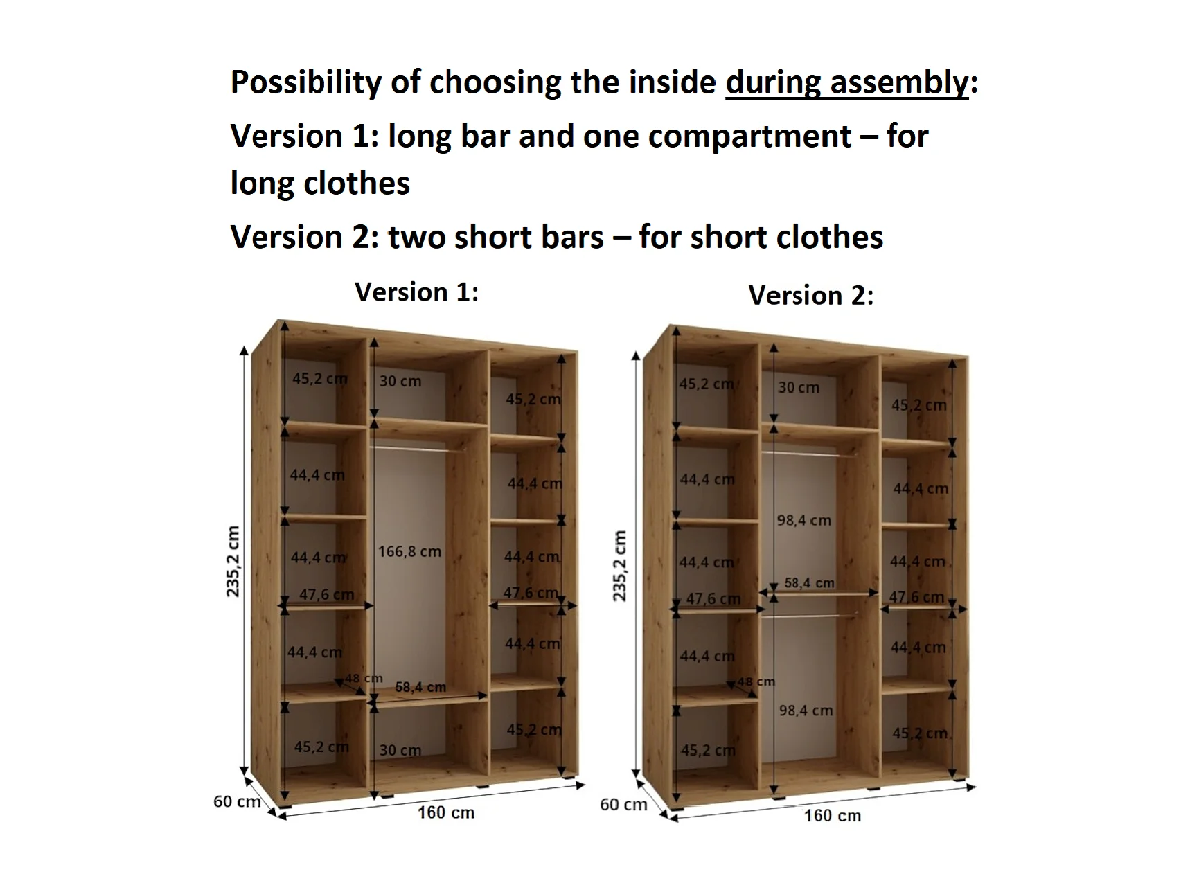 SCHWEBETÜRENSCHRANK DAVOS 7 235,2/160/60 3-türig (Weiß/Artisan/Schwarz)