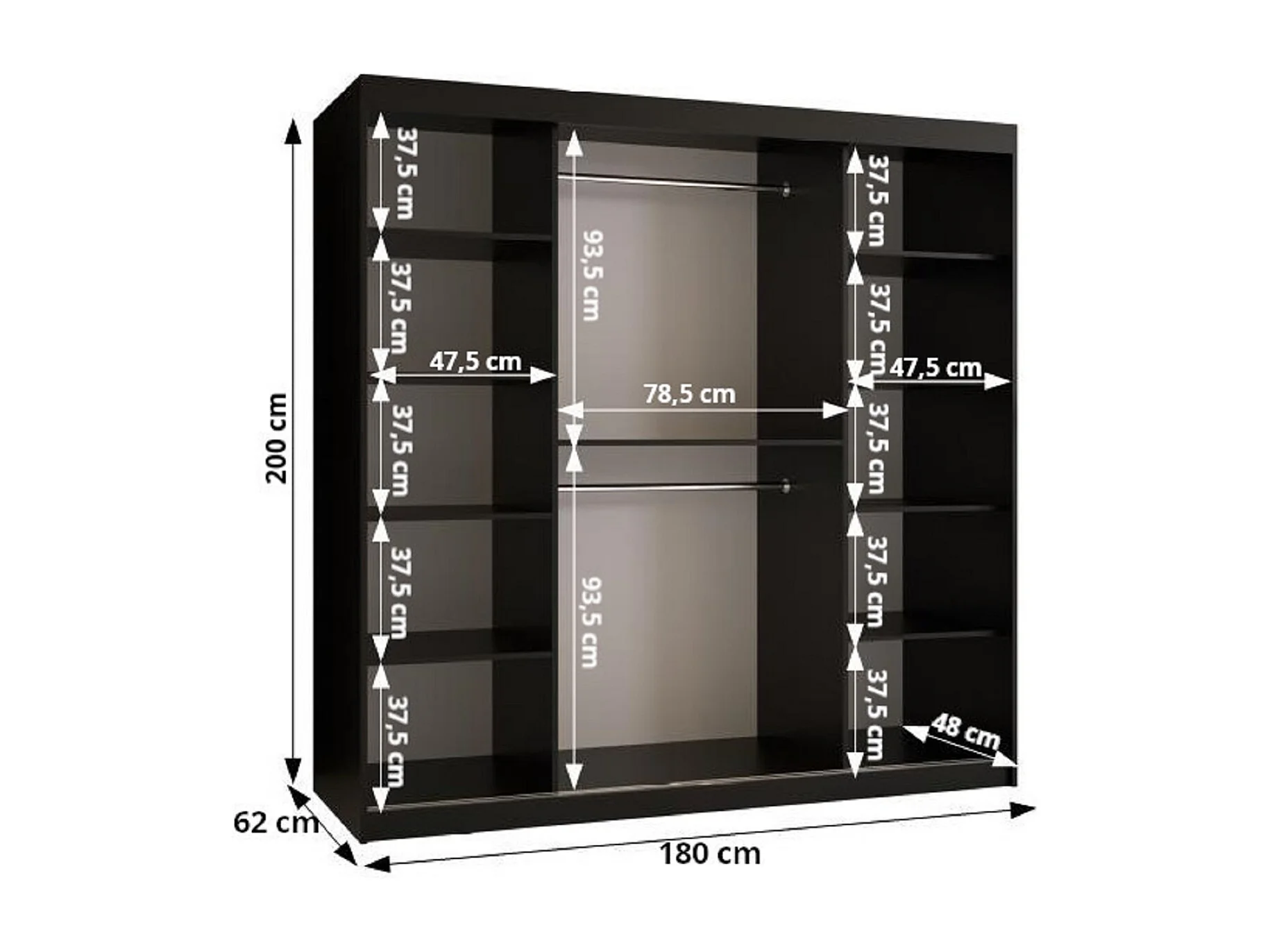 SCHWEBETÜRENSCHRANK DOME 200/180/62 2-türig (Weiß)