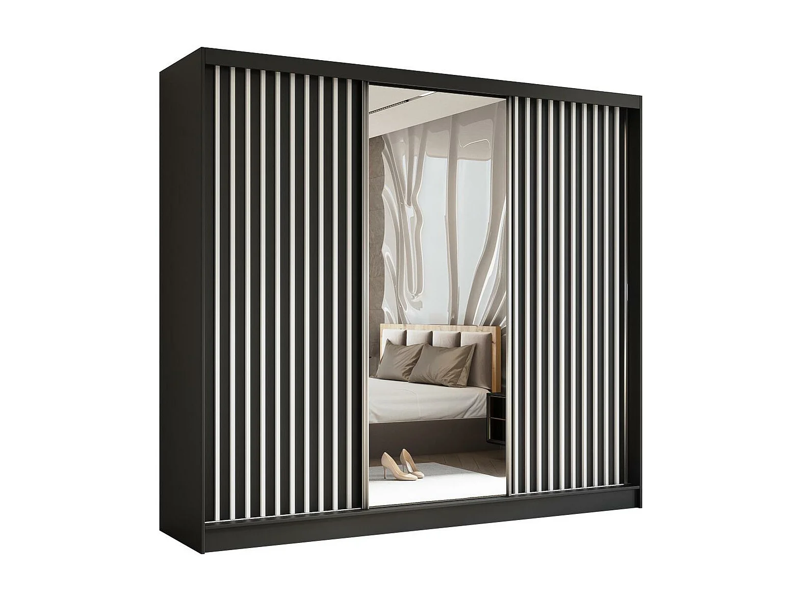 SCHWEBETÜRENSCHRANK Helix 240/216/61 schwarz+weiß mit Schubladeneinsätze