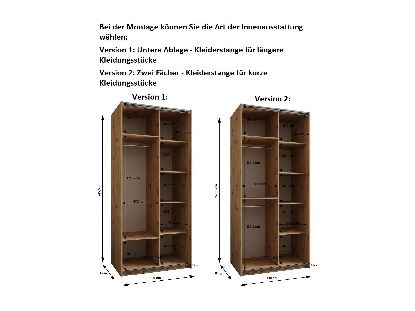 SCHWEBETÜRENSCHRANK Lux 2 245,5/100/64 (Kaschmir/Kaschmir/Gold)
