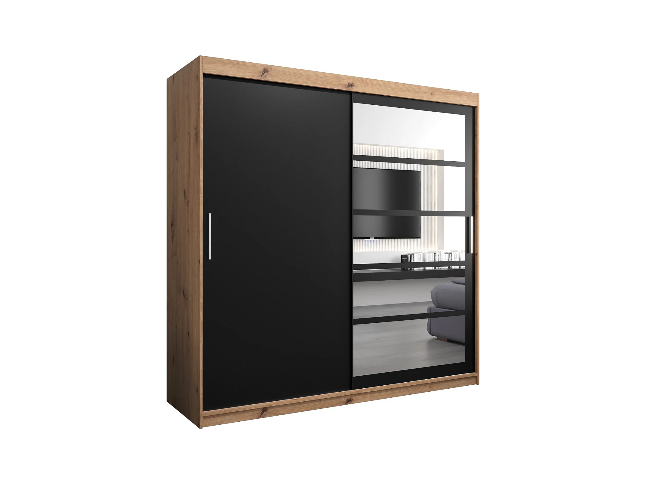 Schwebetürenschrank Pole 200/200/62 2-Türig (Schwarz/Artisan)
