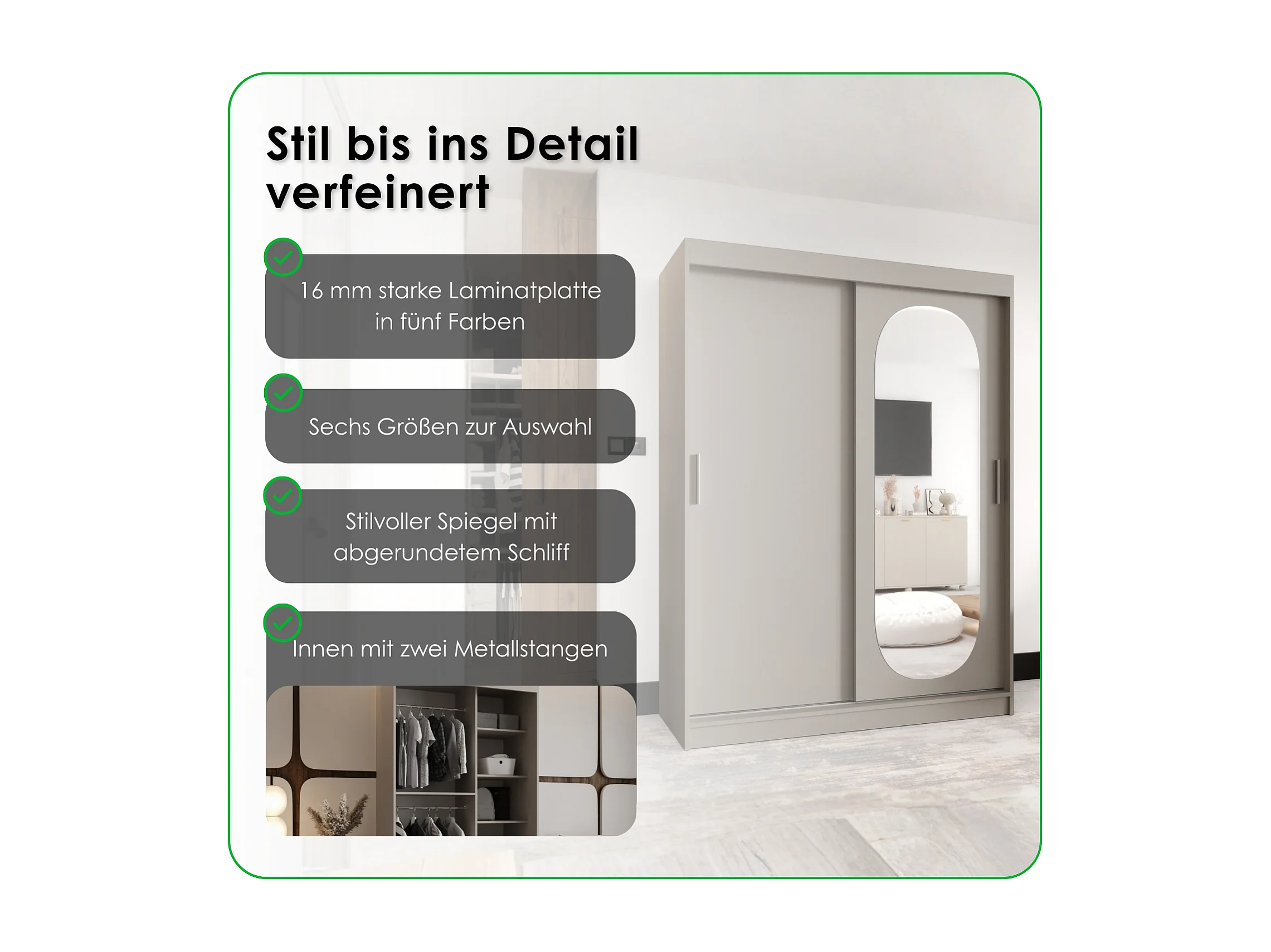 Schiebetürenschrank mit Spiegel ROYAL 200/200/62 2-Türig (Kaschmir)