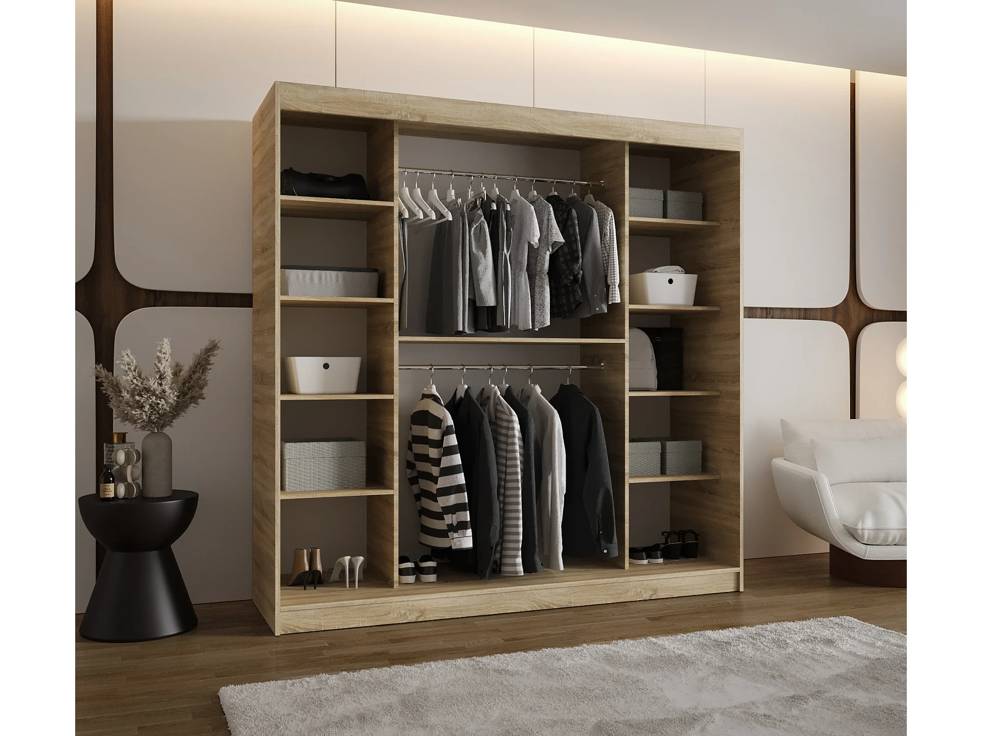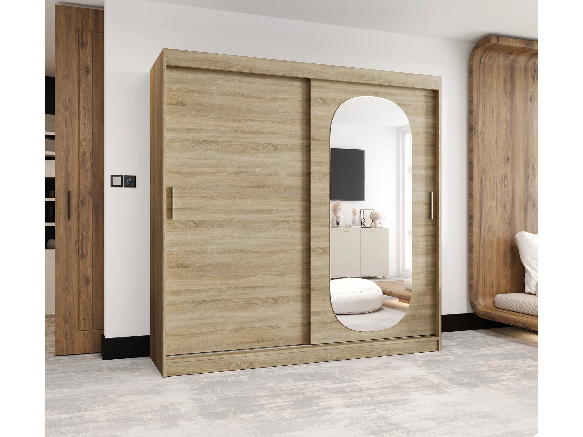 Schiebetürenschrank mit Spiegel ROYAL 200/200/62 2-Türig (Sonoma)