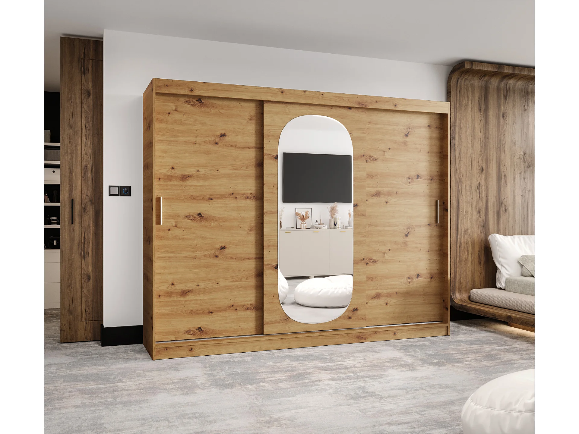 Schiebetürenschrank mit Spiegel ROYAL 200/250/62 3-Türig (Artisan)