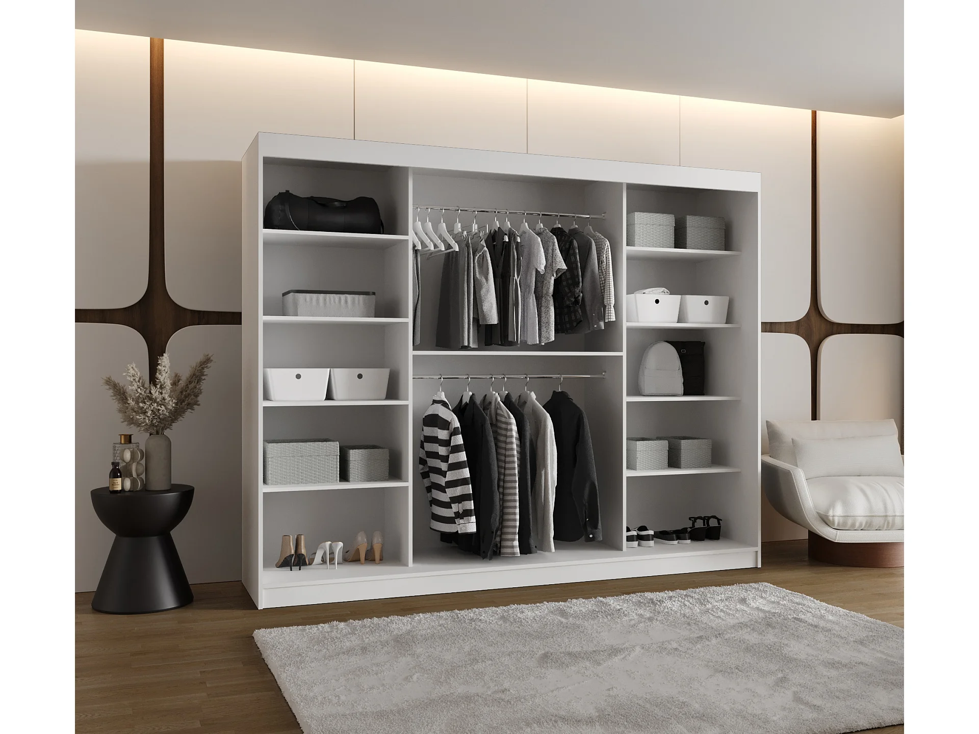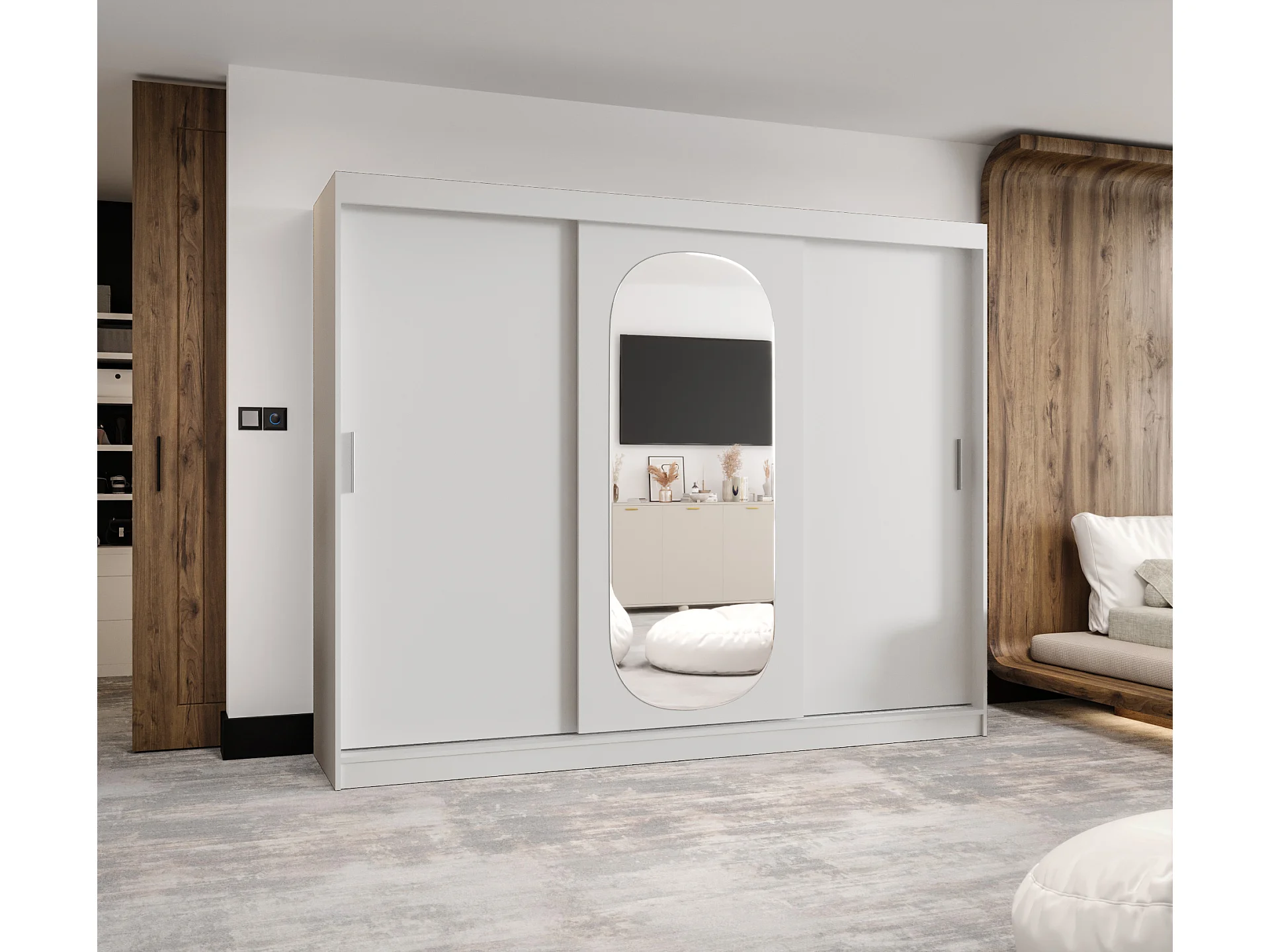 Schiebetürenschrank mit Spiegel ROYAL 200/250/62 3-Türig (Weiß)