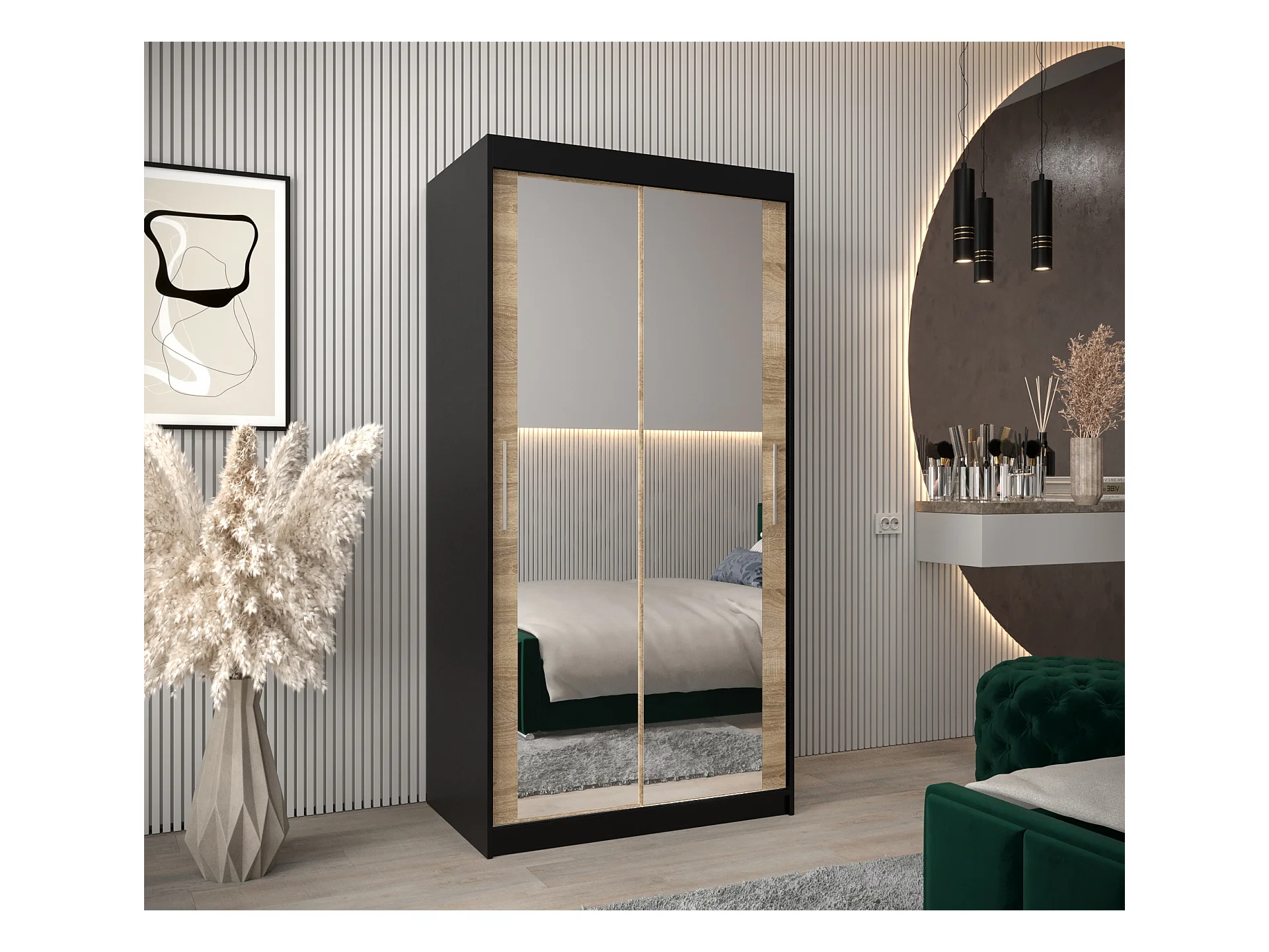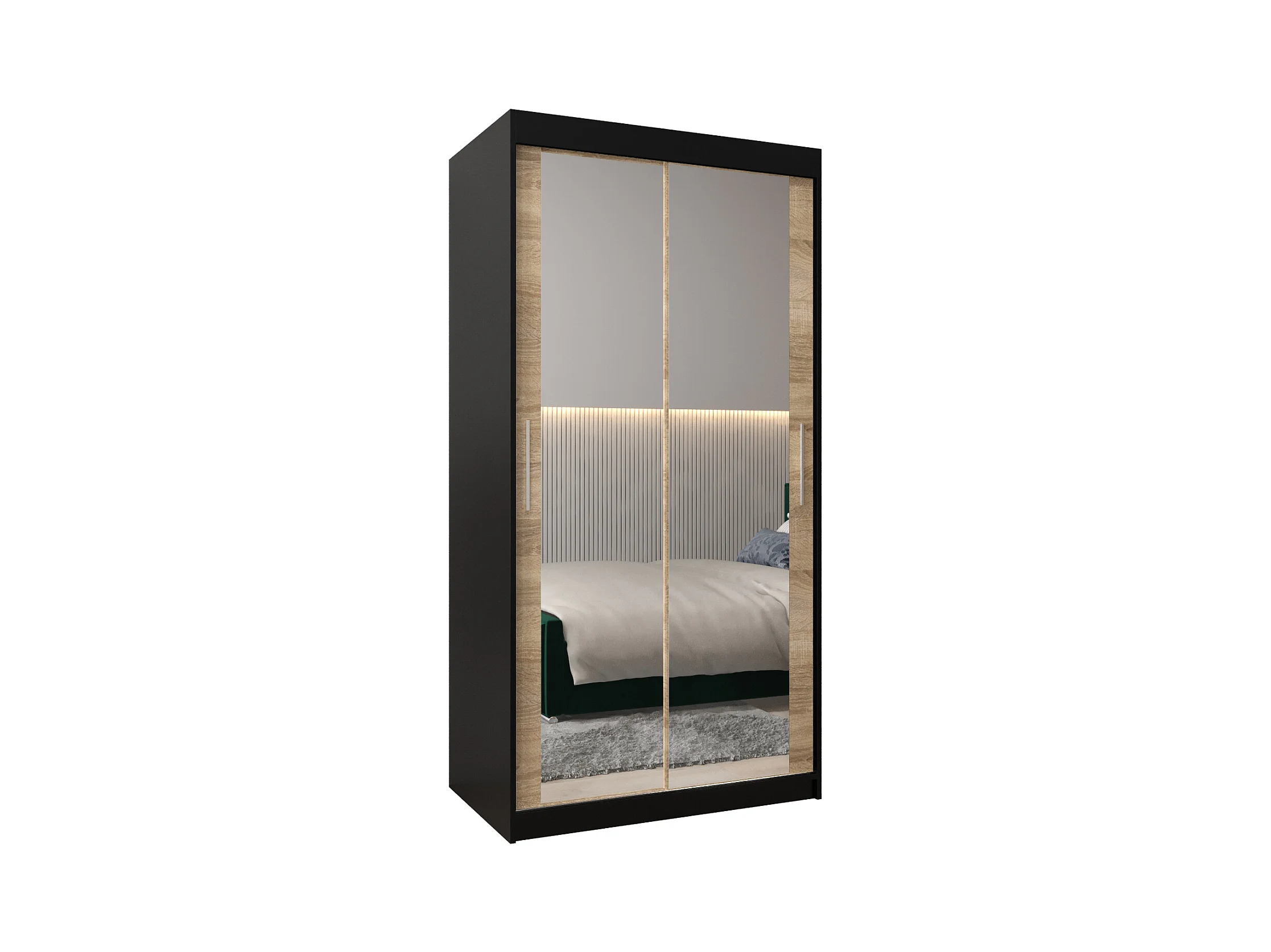 Schwebetürenschrank Tokyo 3 200/100/62 2-Türig (Schwarz/Sonoma)