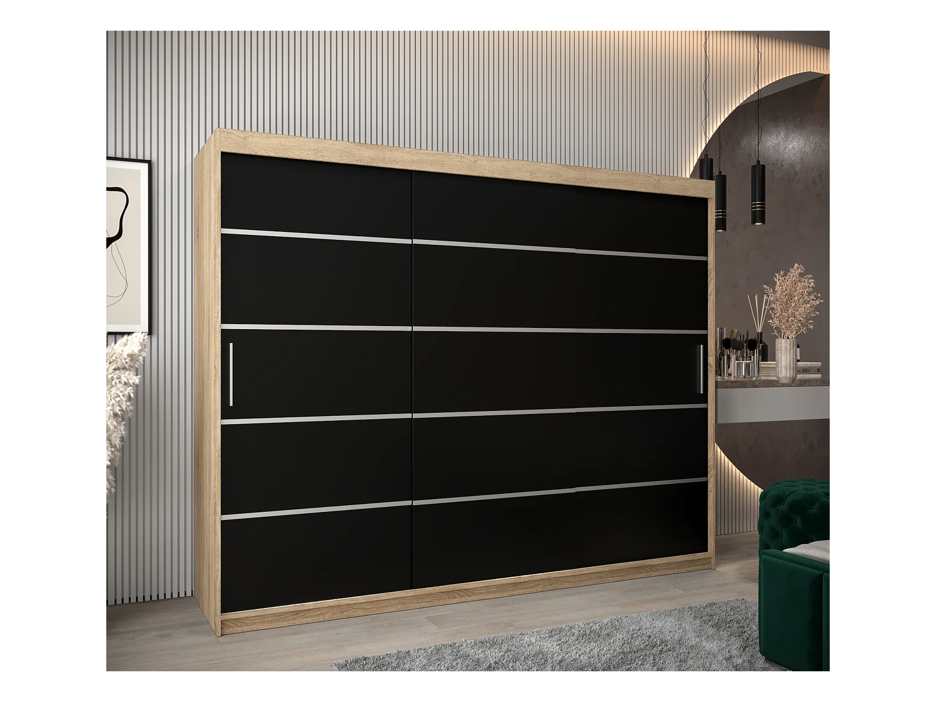 SCHWEBETÜRENSCHRANK LAMELO 200/250/62 3-türig (Schwarz/Schwarz/Artisan)
