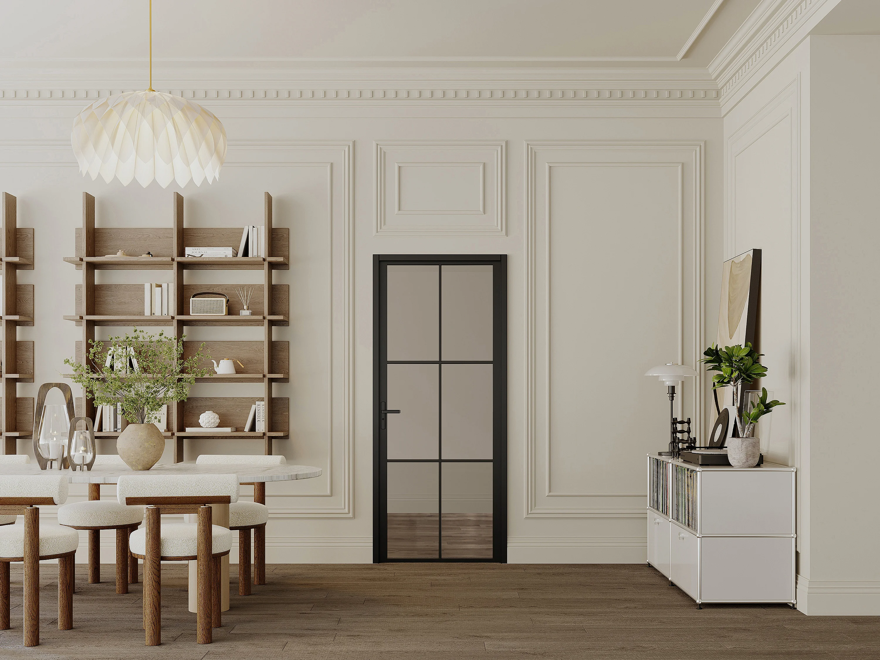 Tür-Set - wendbar - Aluminium & getöntes Sicherheitsglas - 204 x 93 cm - Schwarz - SEROTO