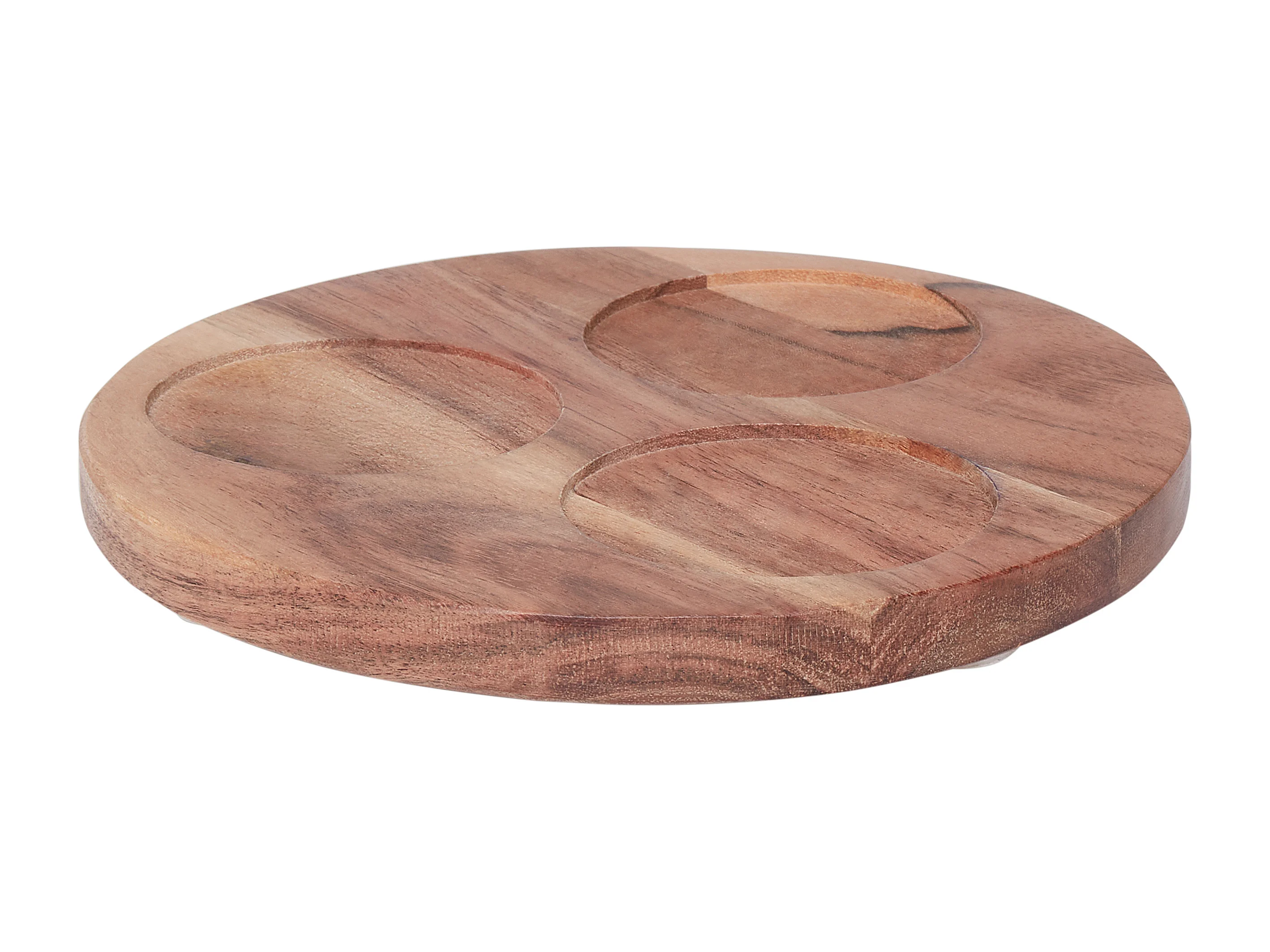 Tortenplatte mit Fuß Mangoholz hellbraun Antik-Optik rund 30 cm Retro Memfis