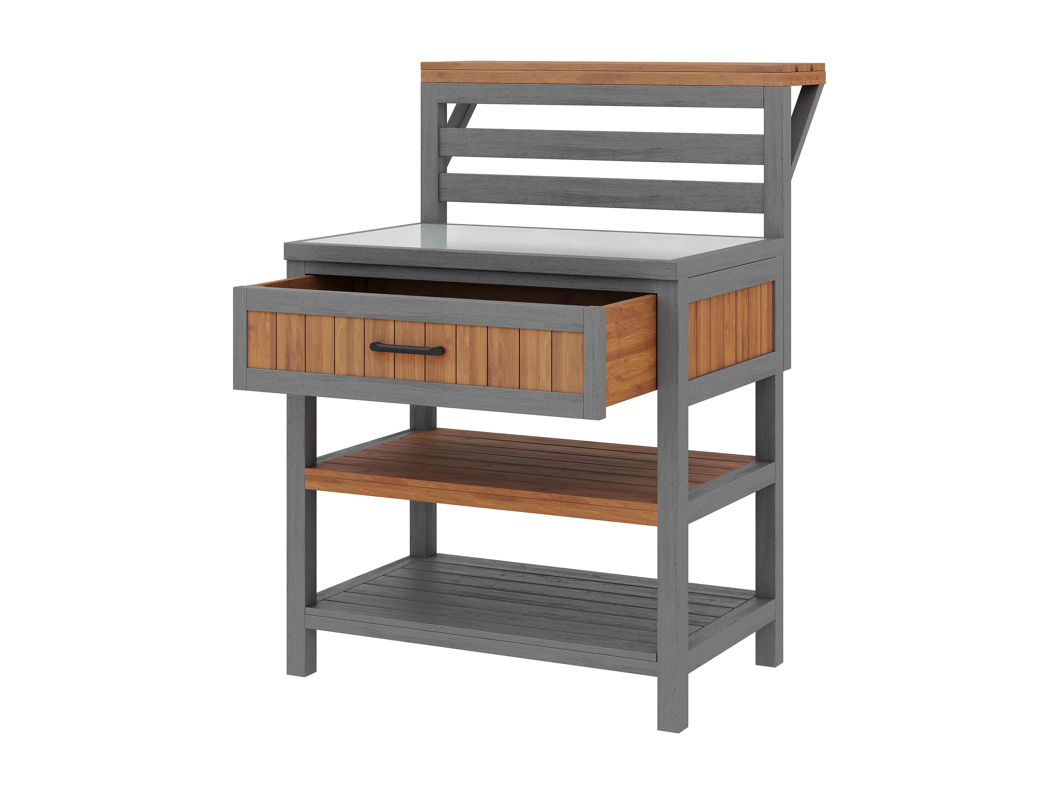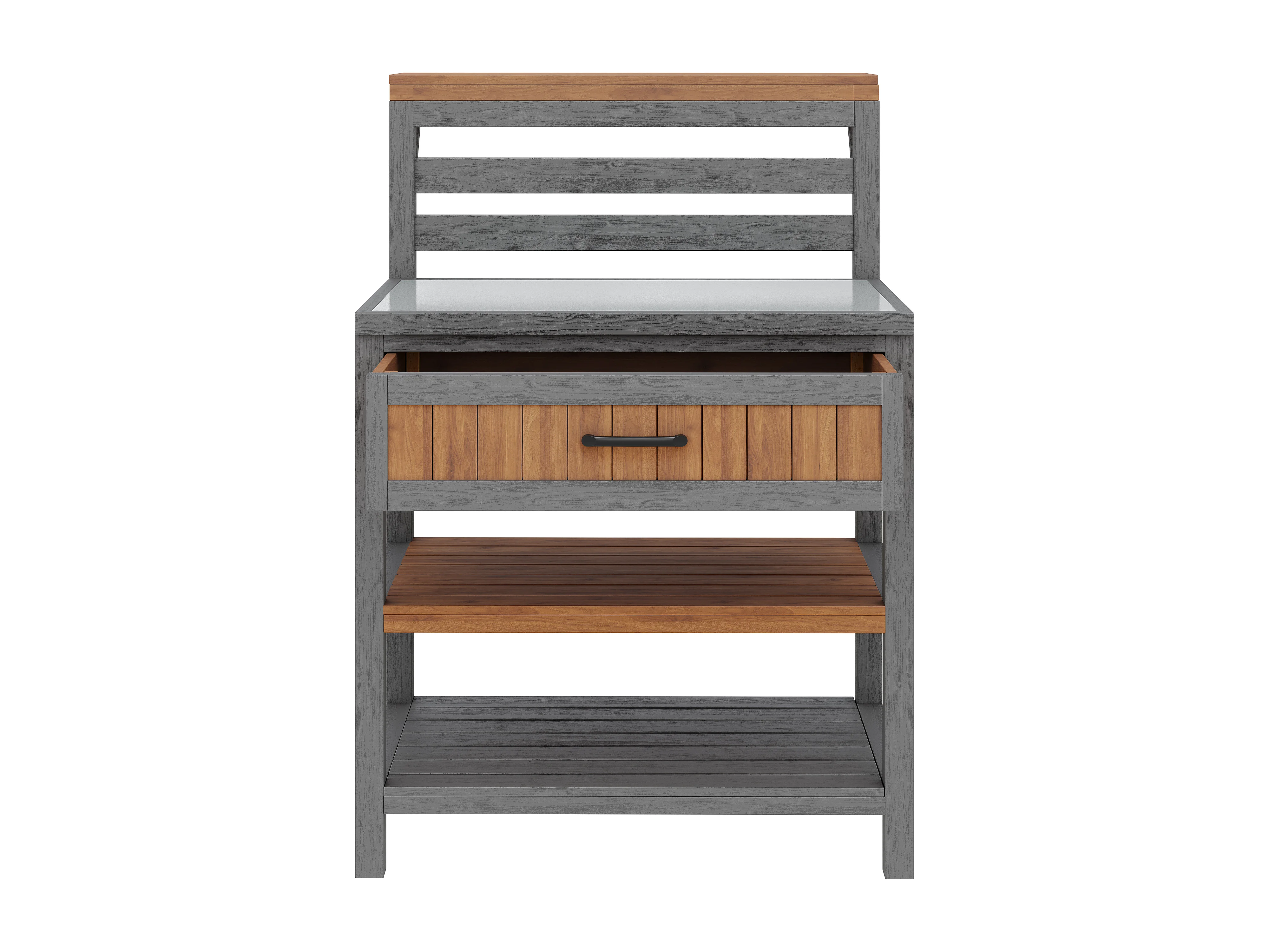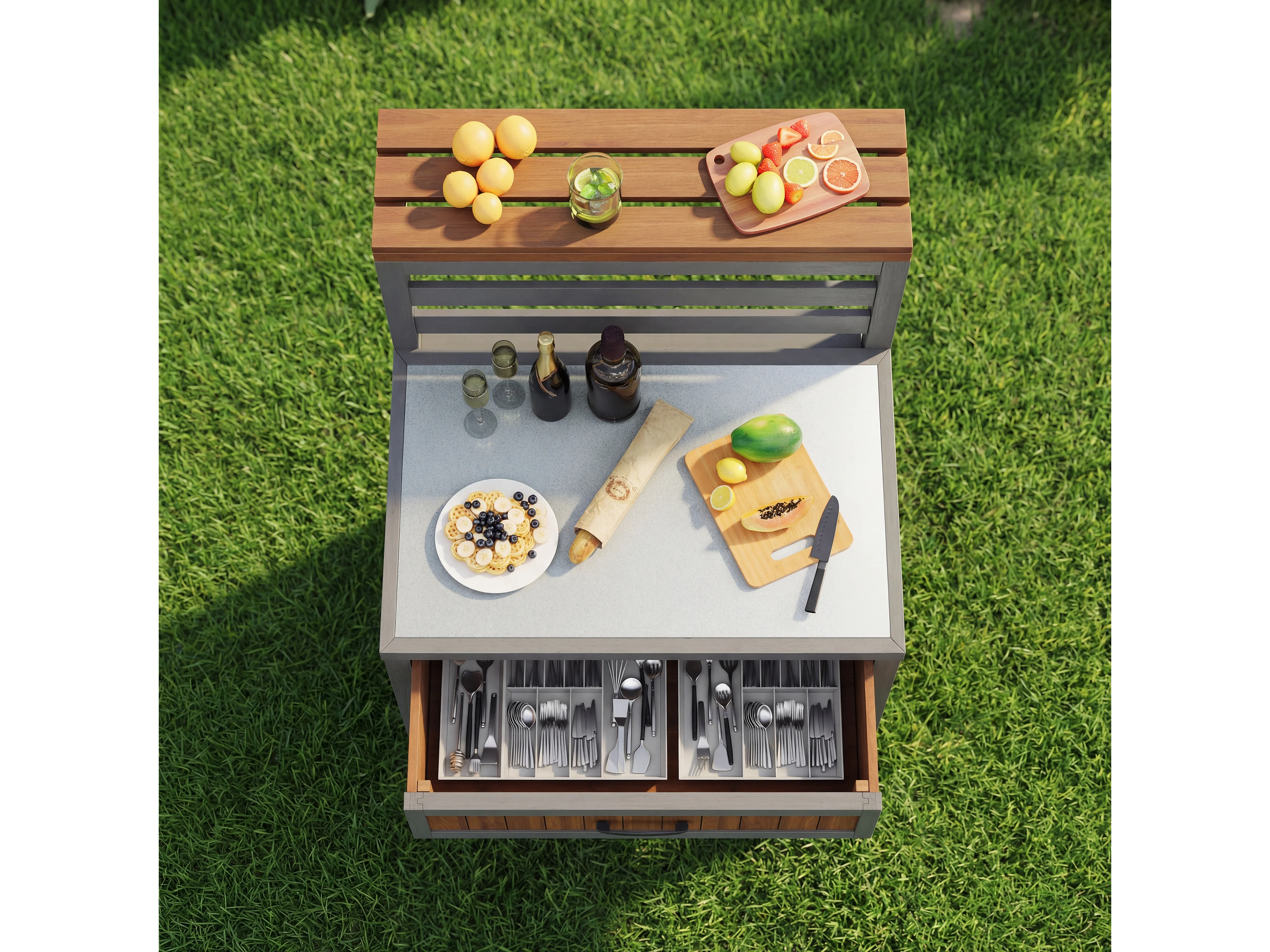 Servierwagen für den Garten aus Massivholz mit Edelstahl-Platte und großer Schublade - Sichere Grillstation mit offenen Regalen - 80x72,5x123cm - Grau
