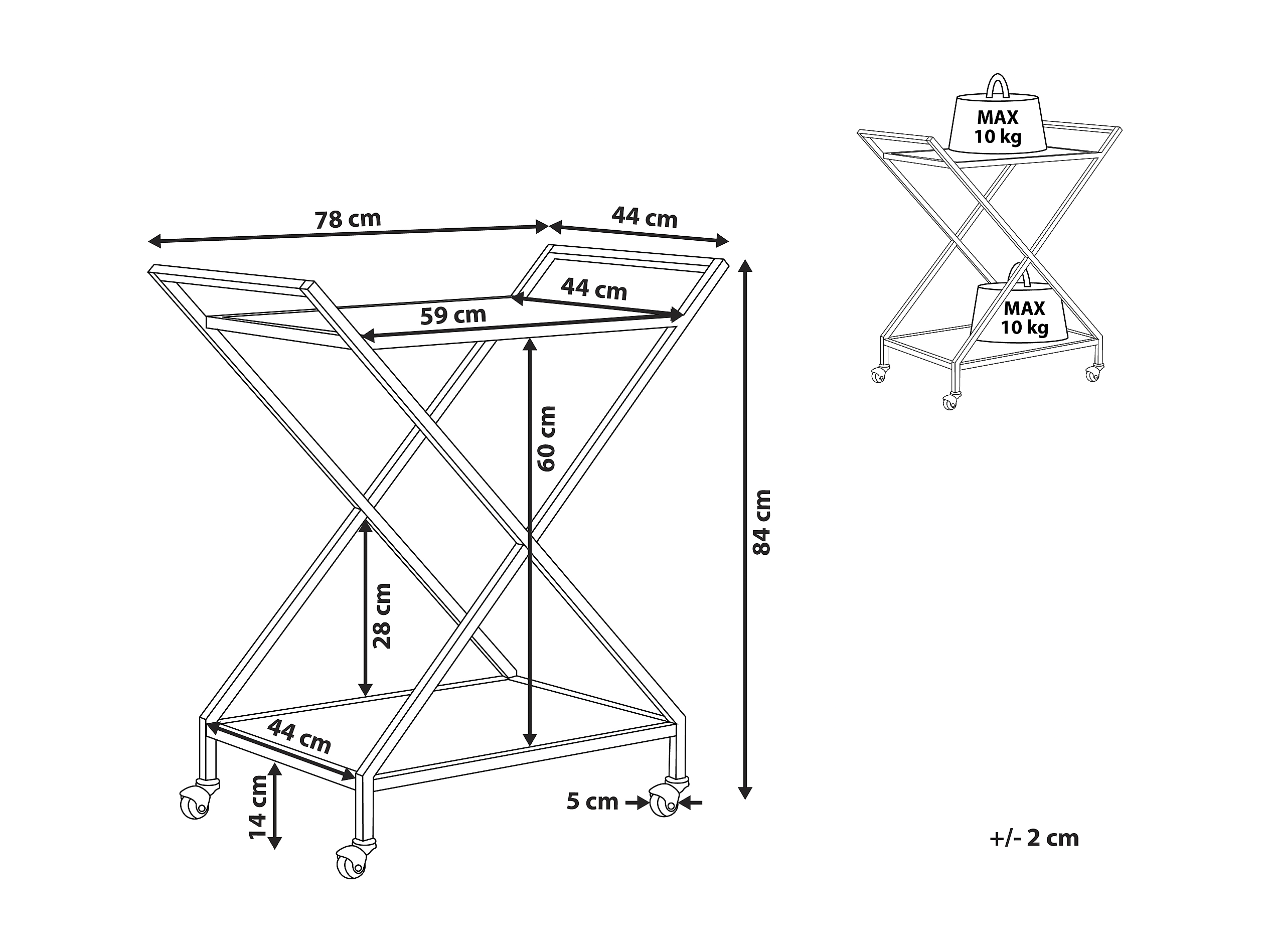 Wunderschöner Servierwagen gold mit 2 Böden aus Spiegelglas Ivera