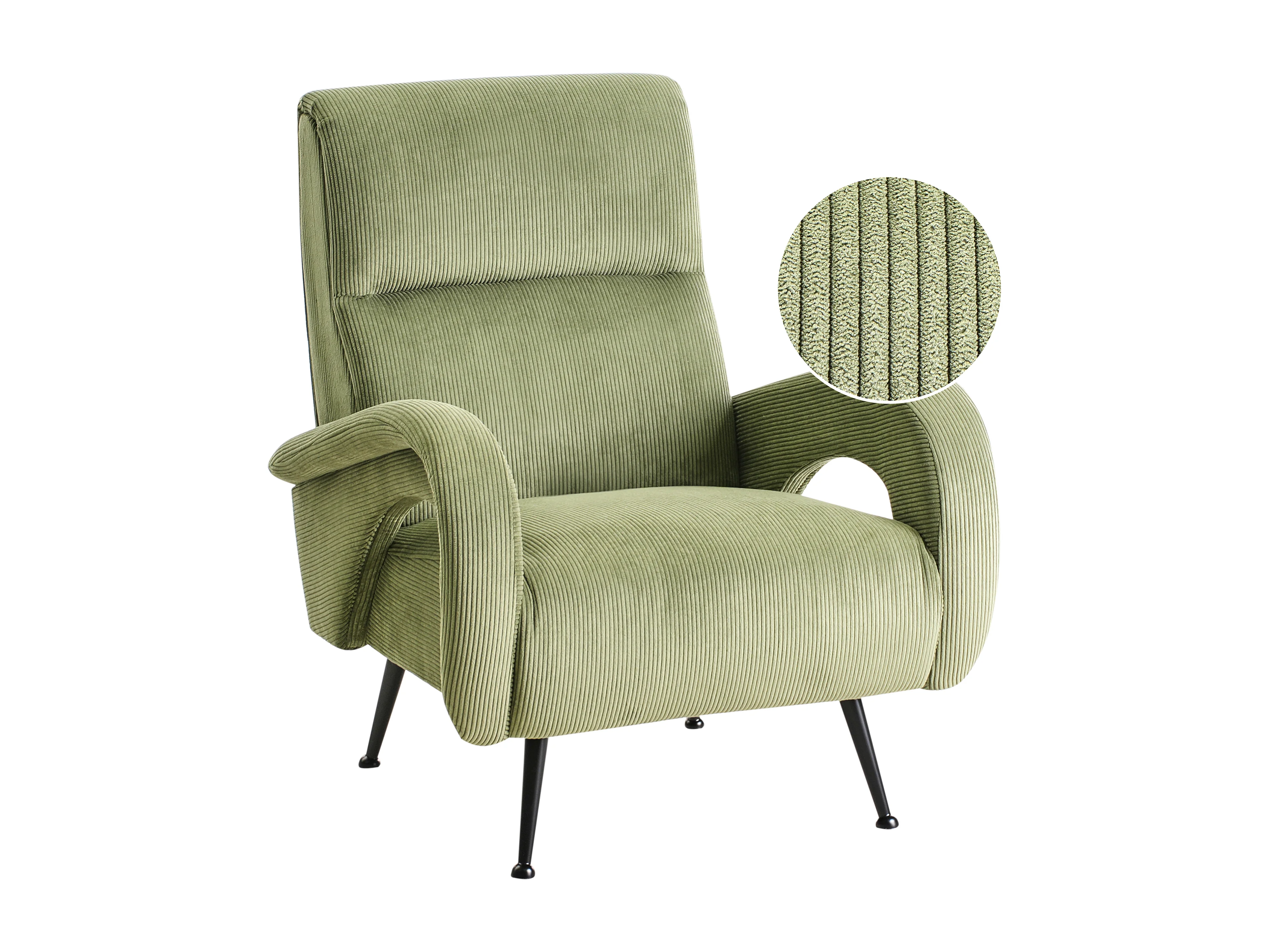 Sessel aus Cord grün mit schwarzen Beinen Retro Stil Svalov