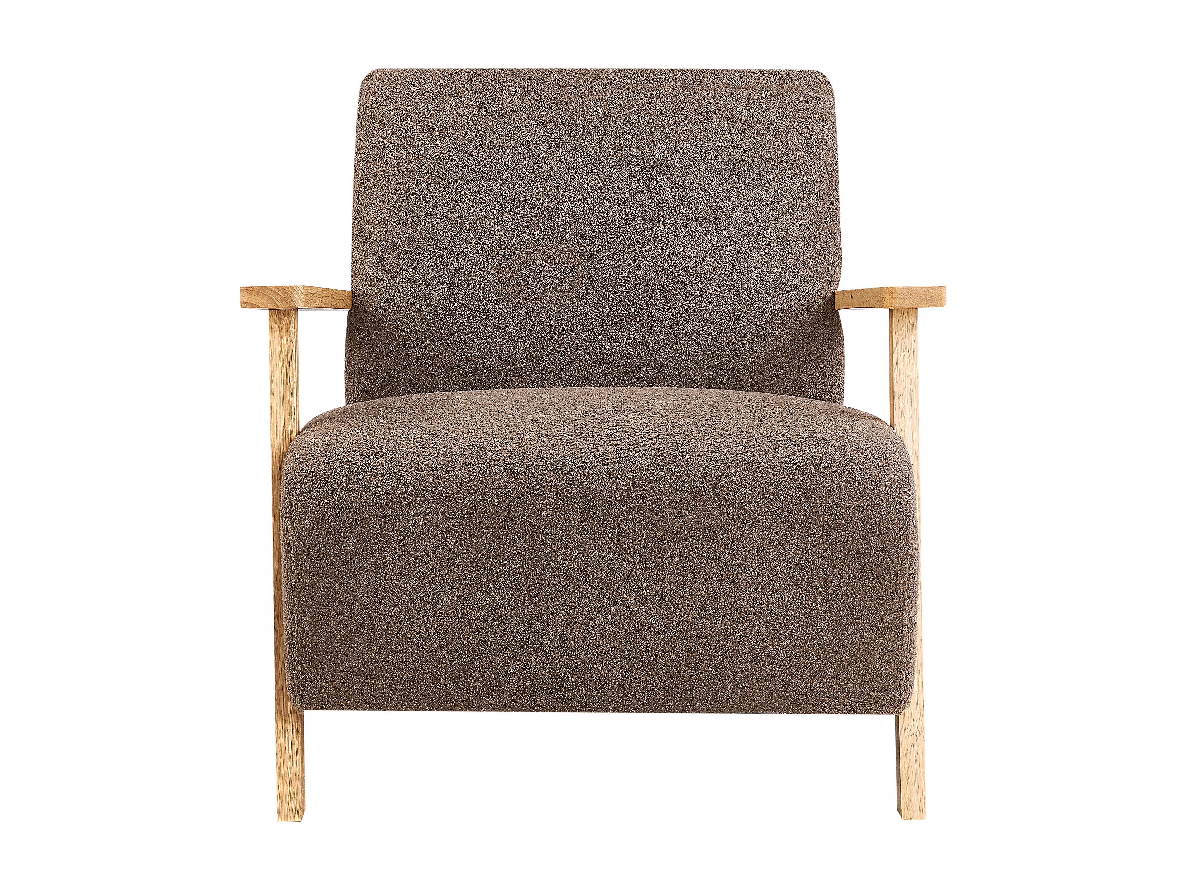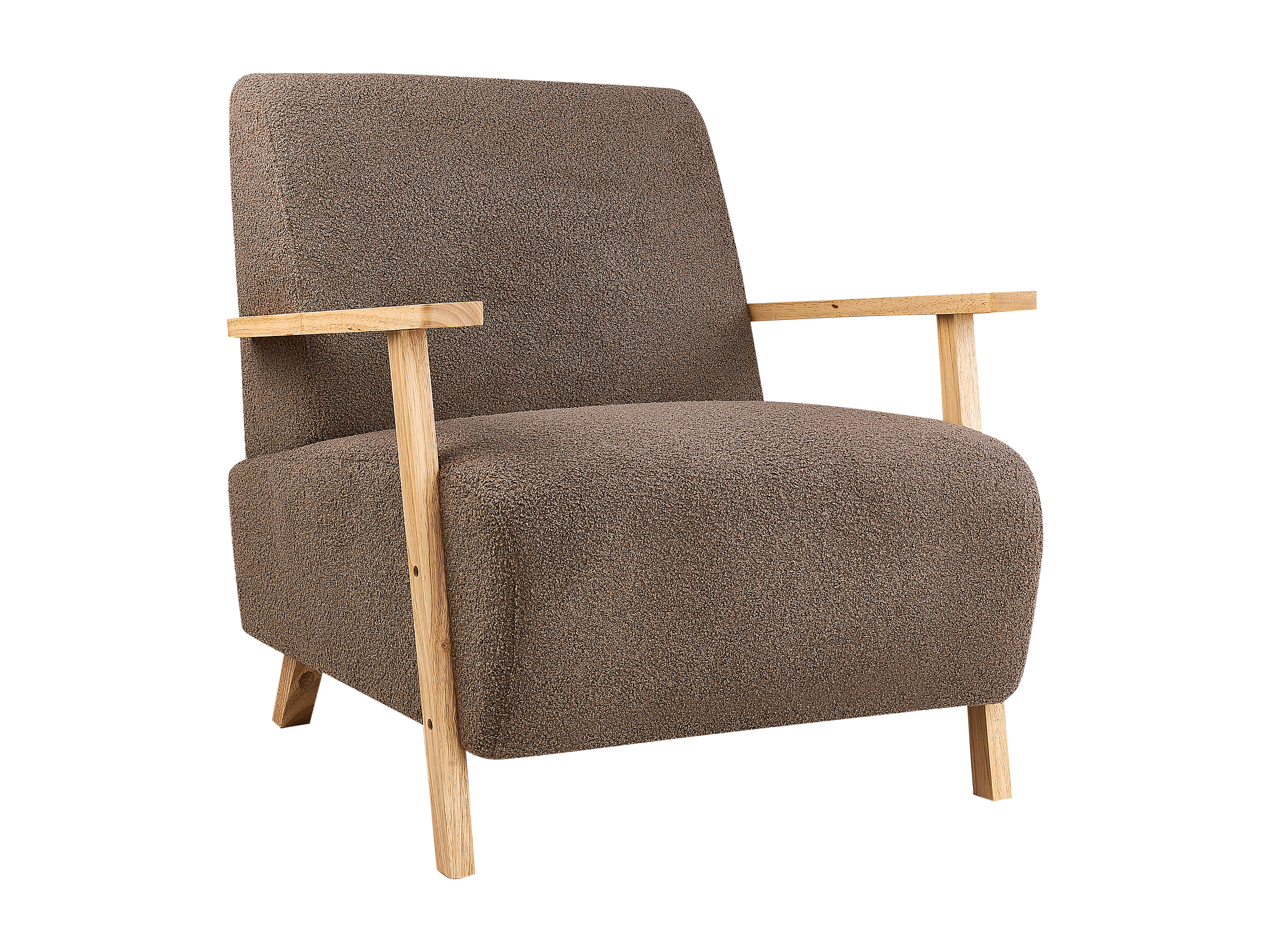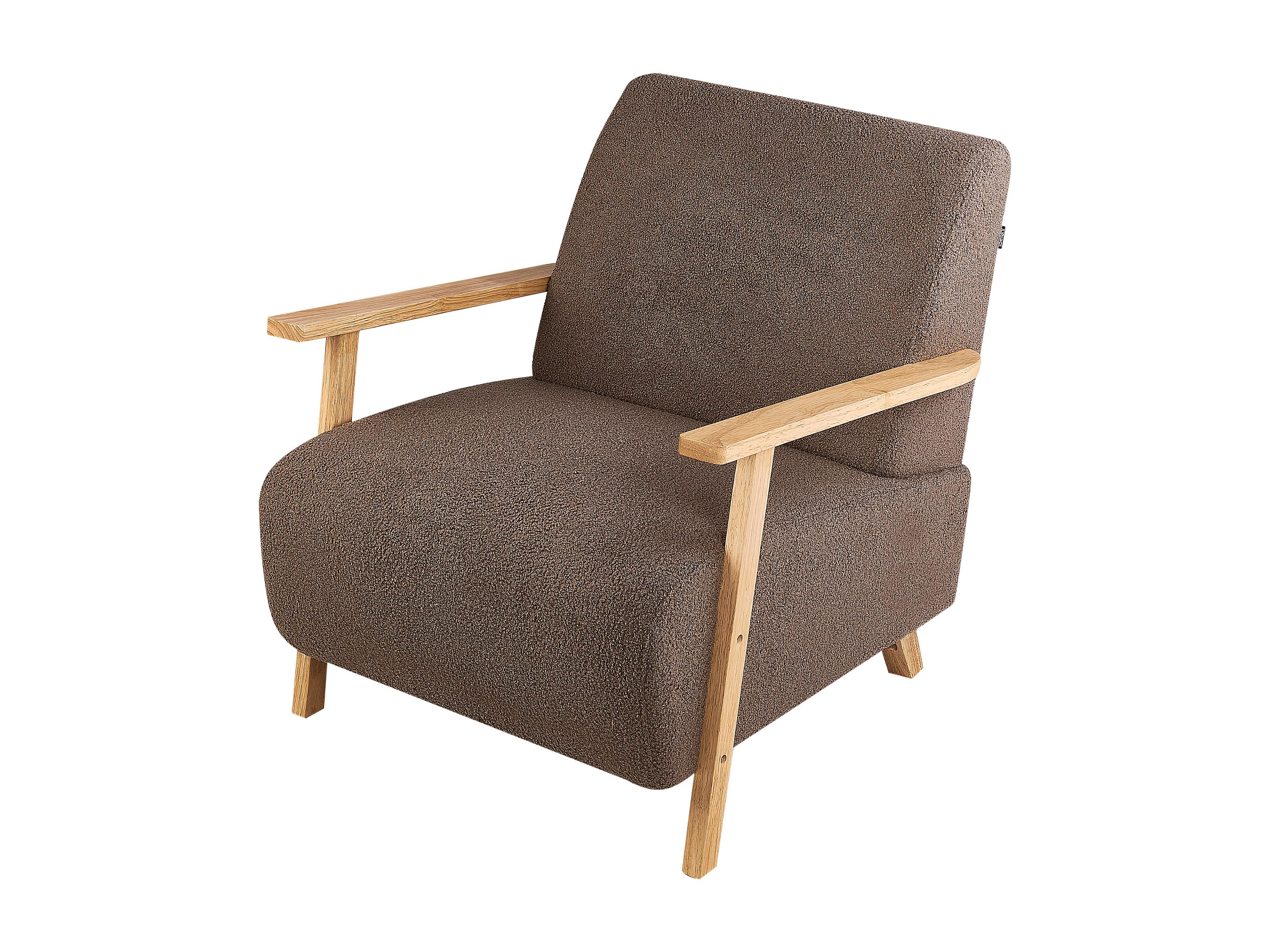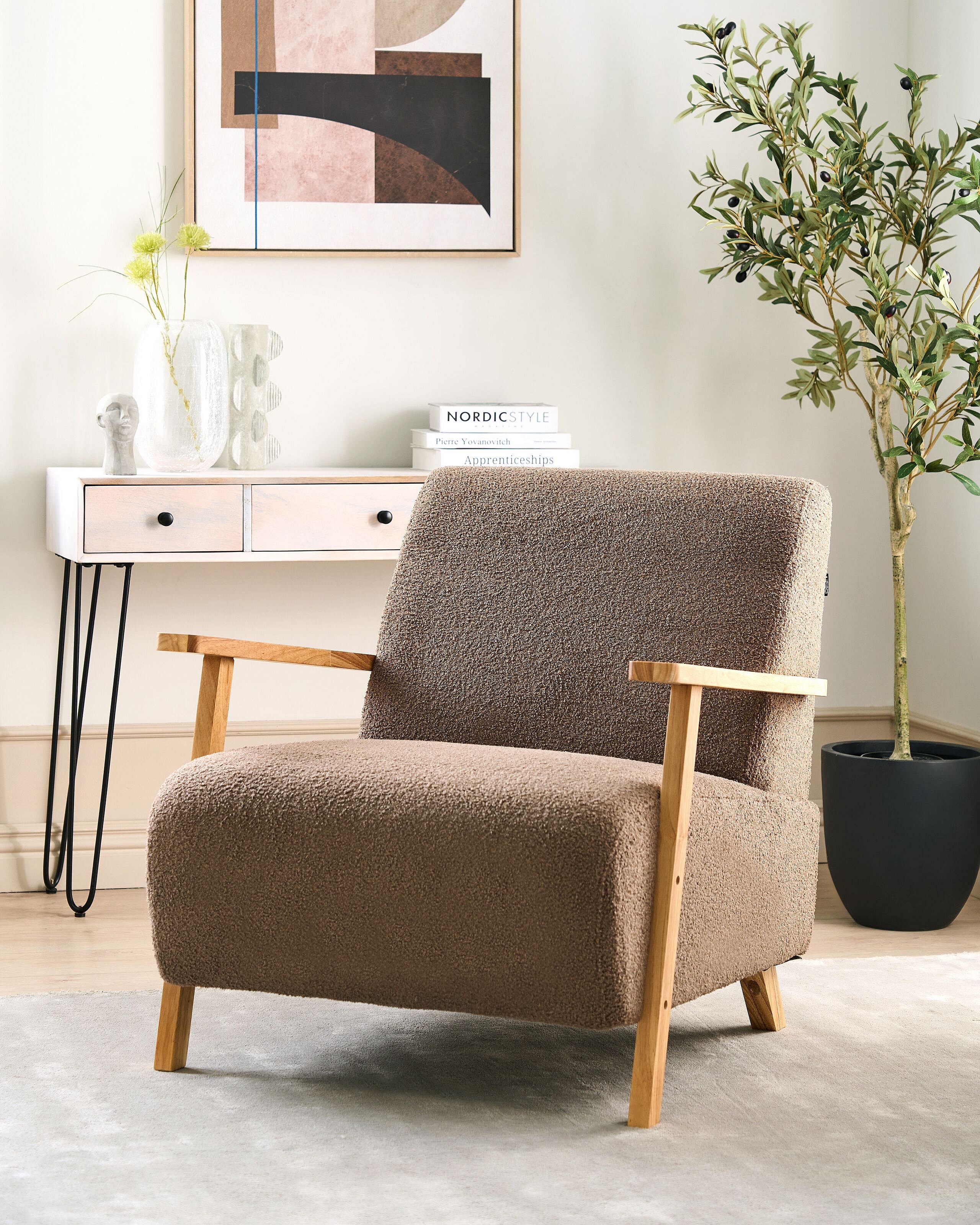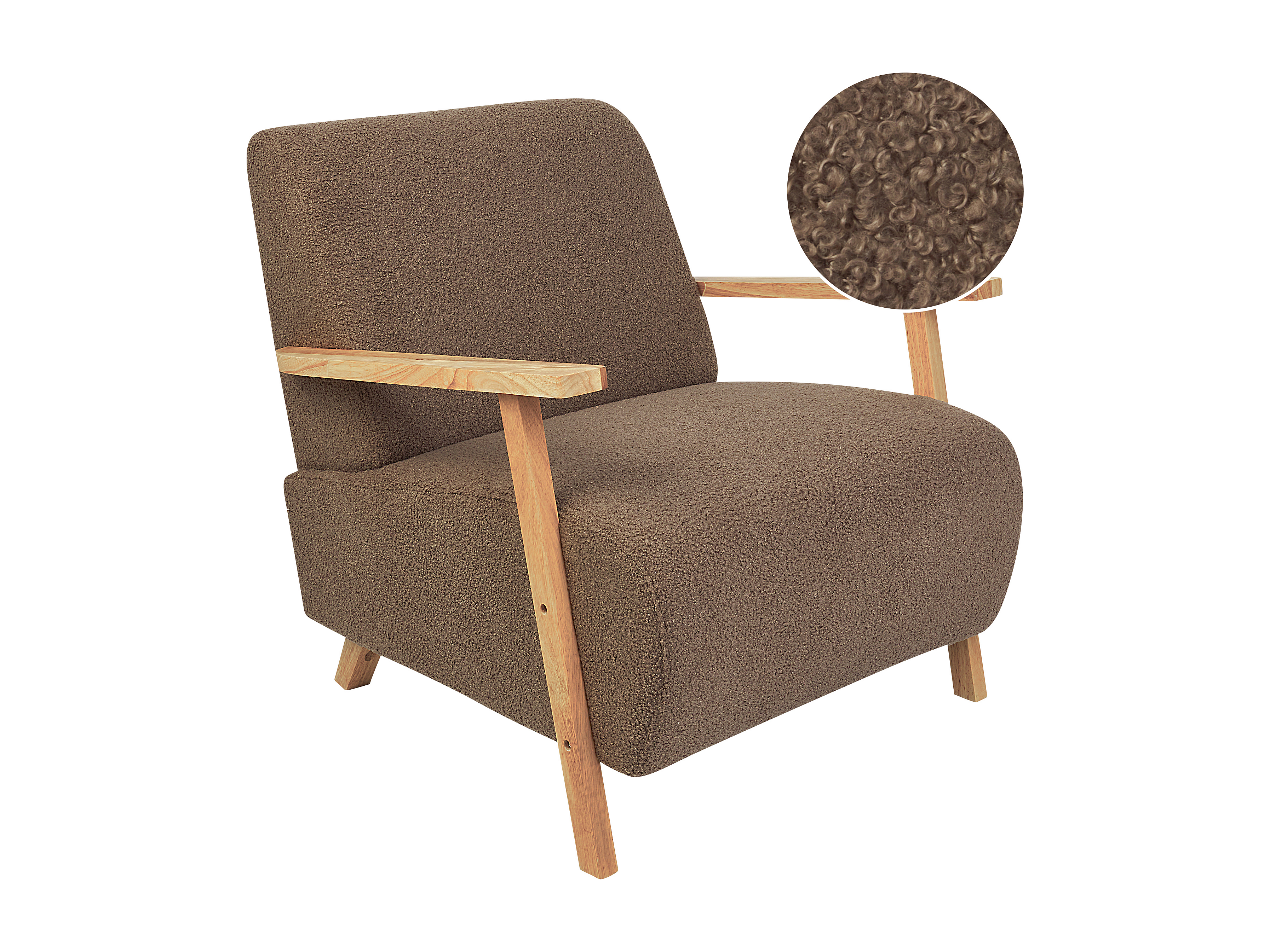 Sessel Bouclé braun / heller Holzfarbton mit Armlehnen Retro Stil Lesja