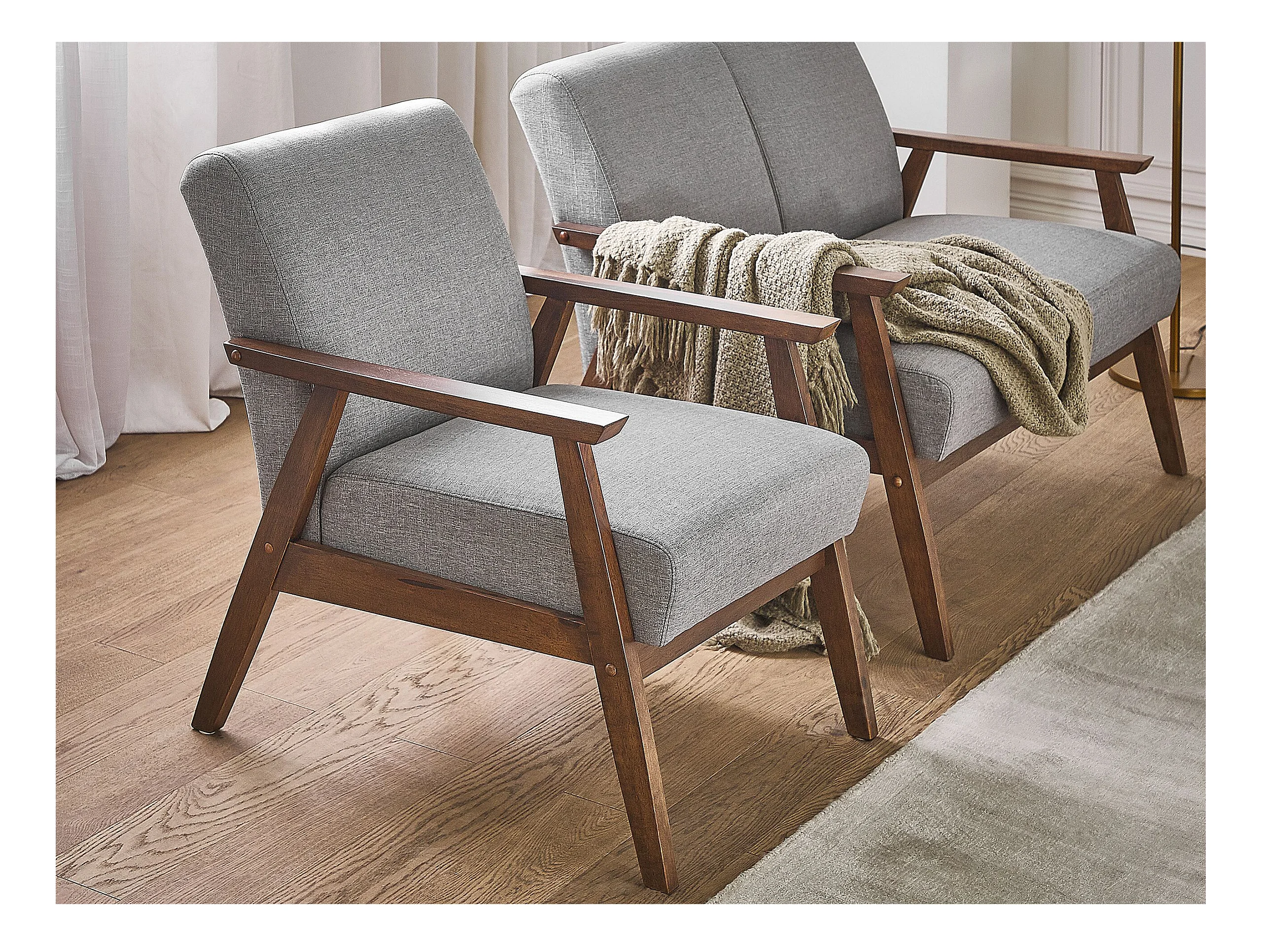 Retro Wohnzimmer Sessel Polsterbezug grau mit Armlehnen Holzgestell Asnes