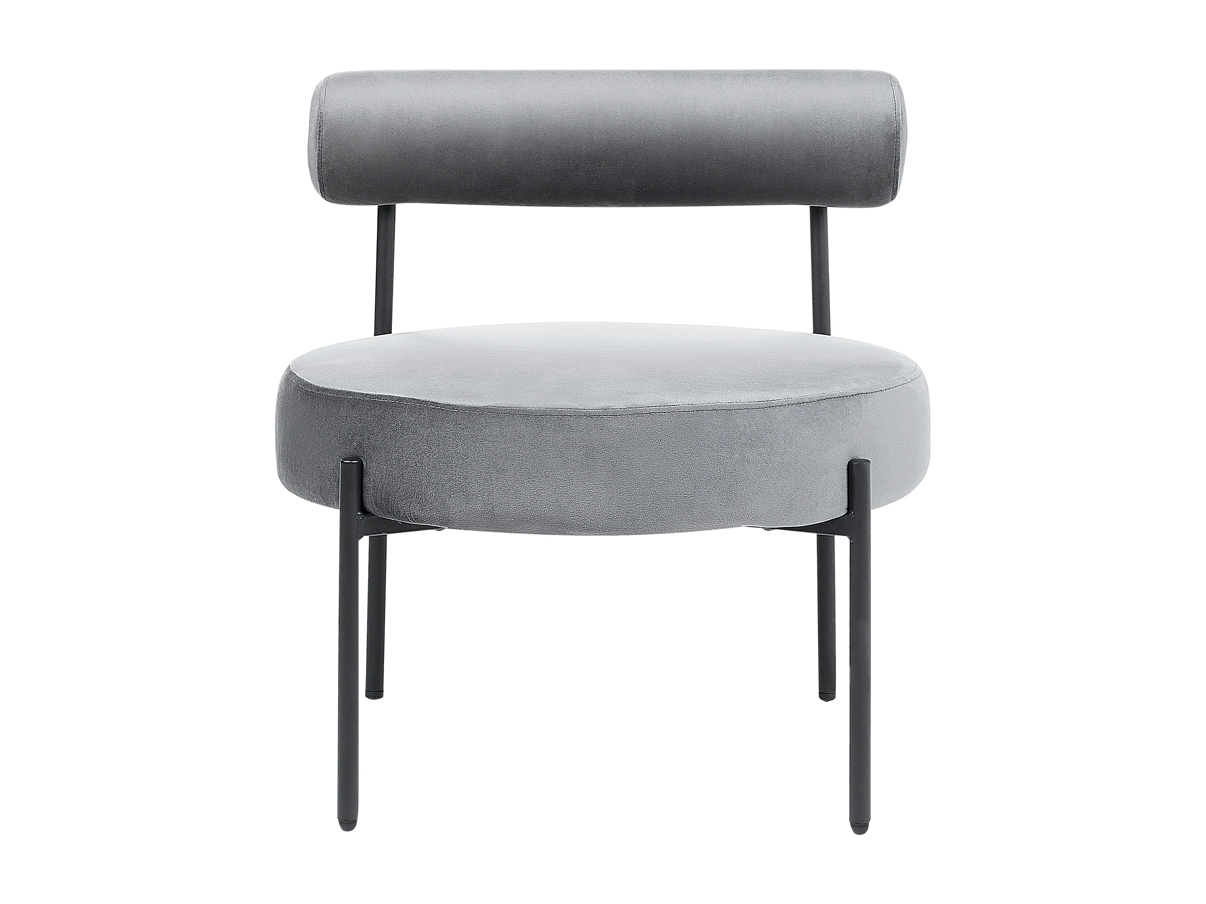 Sessel rund Samt grau niedrige Lehne schwarze Metallbeine Retro Alpha