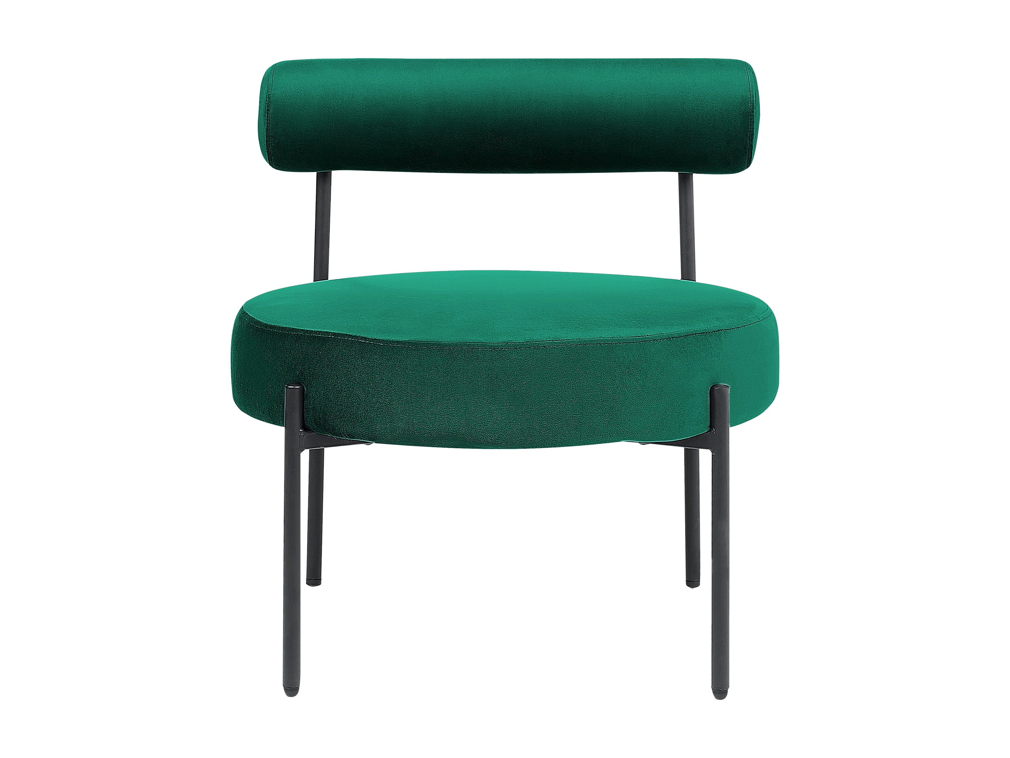 Sessel rund Samt smaragdgrün niedrige Lehne schwarze Metallbeine Retro Alpha