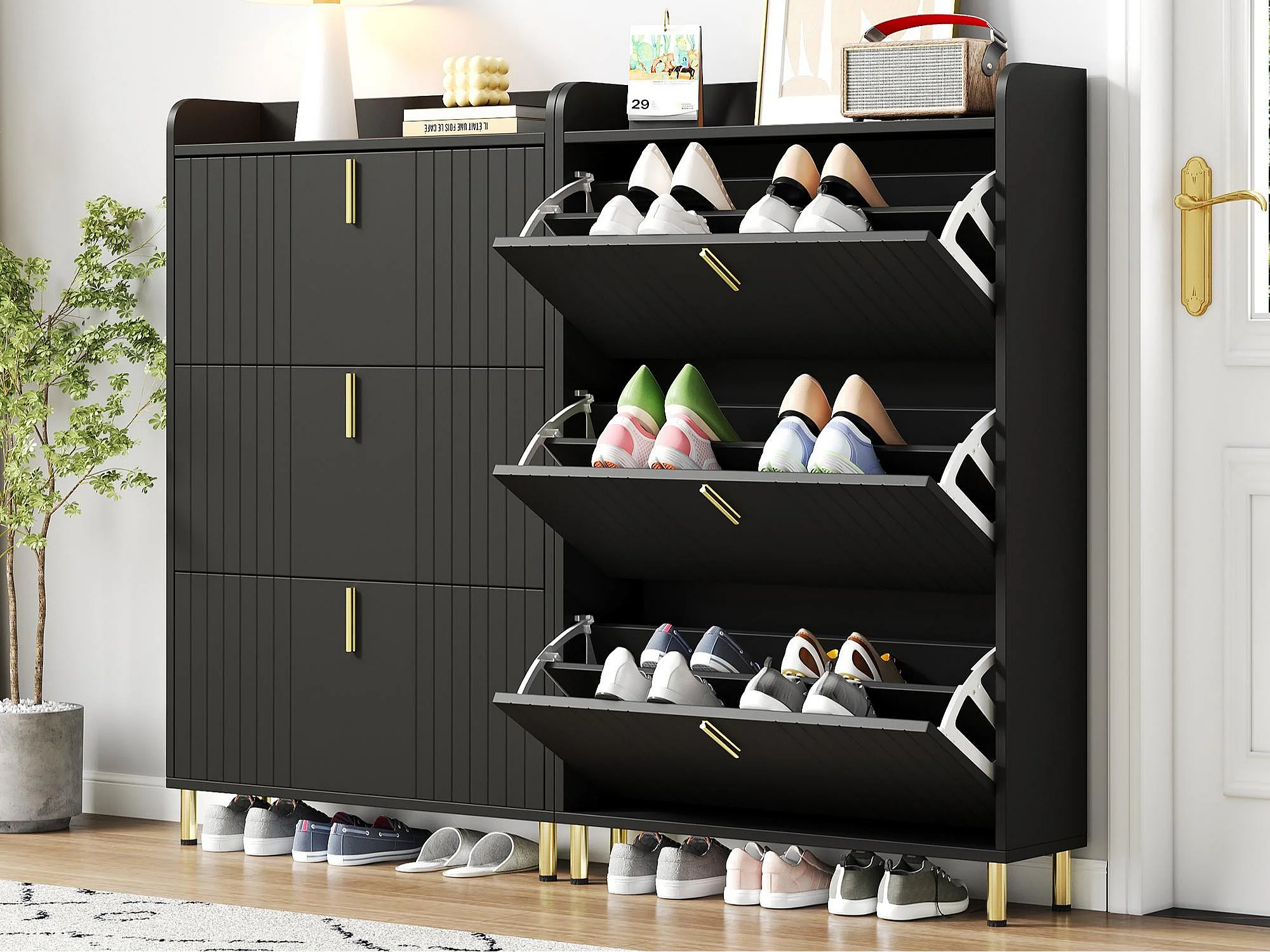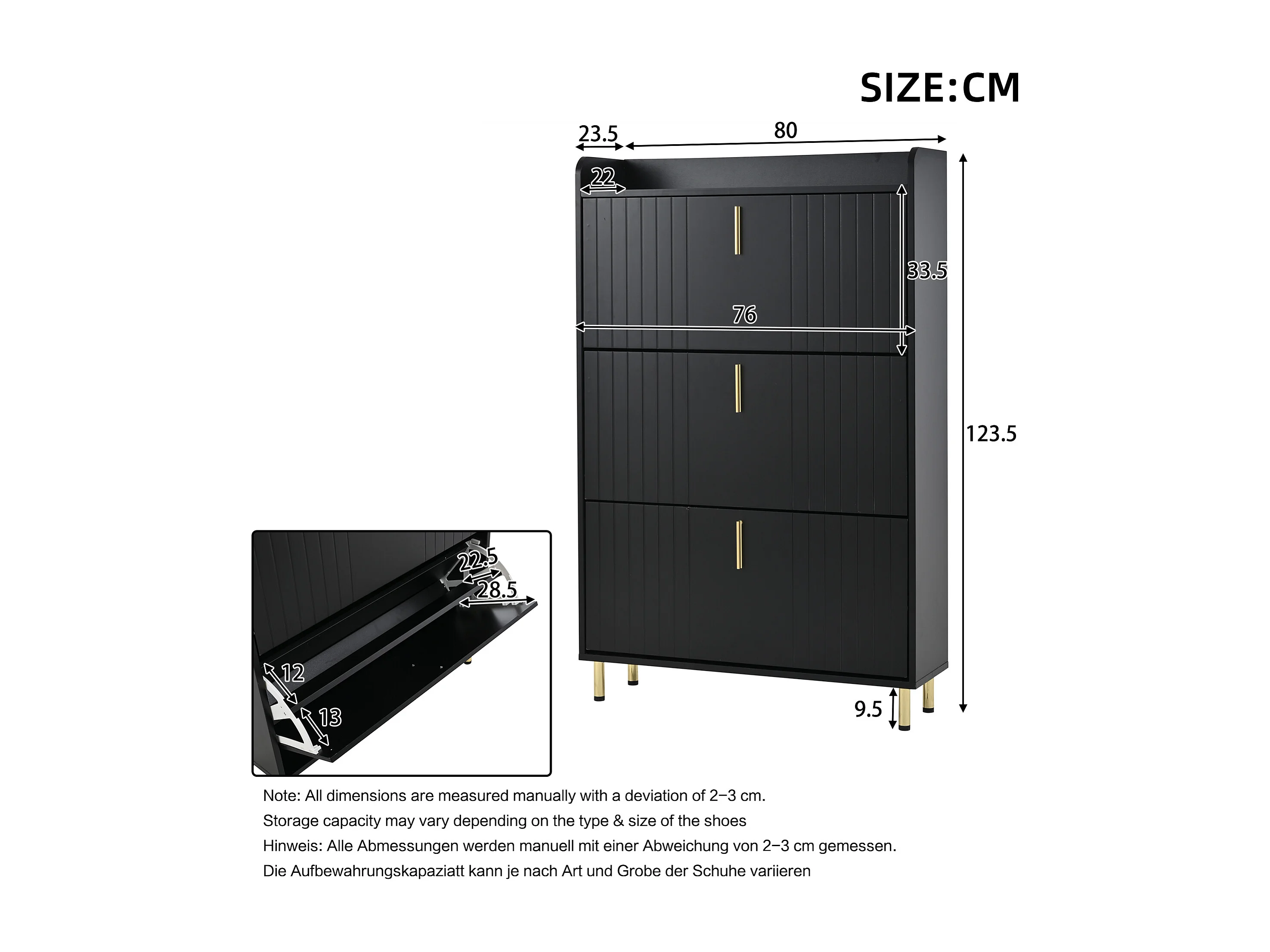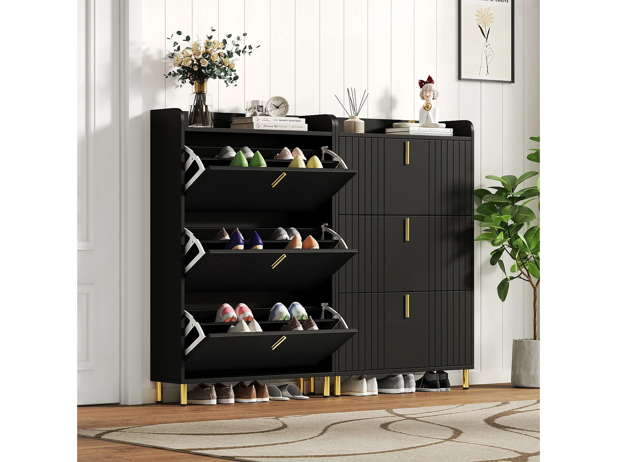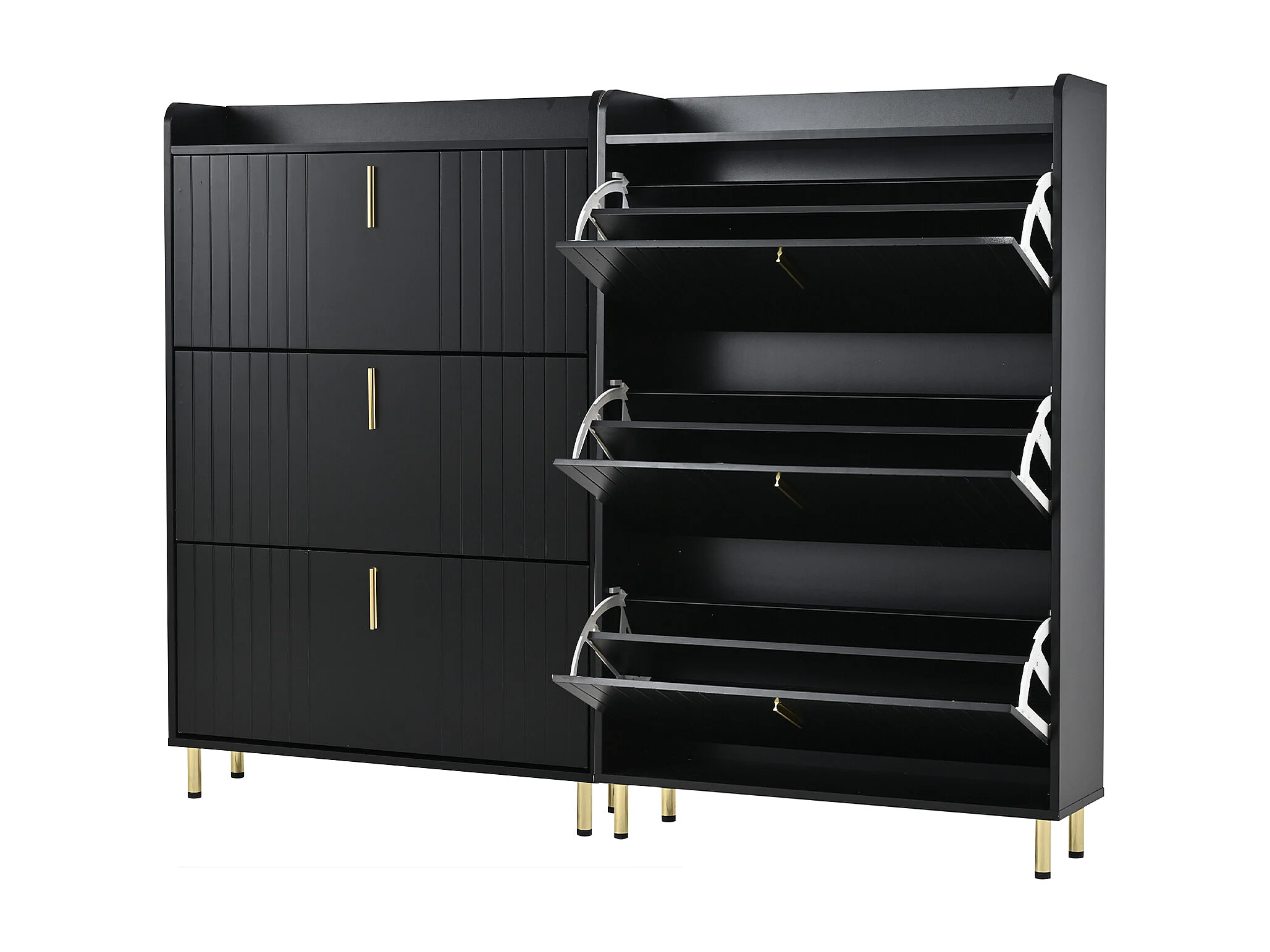 Set aus 2 Schuhschränken 160x23,5x123,5 cm - 6 Türen - 12 Fächer - Höhenverstellbar - MDF - Schwarz