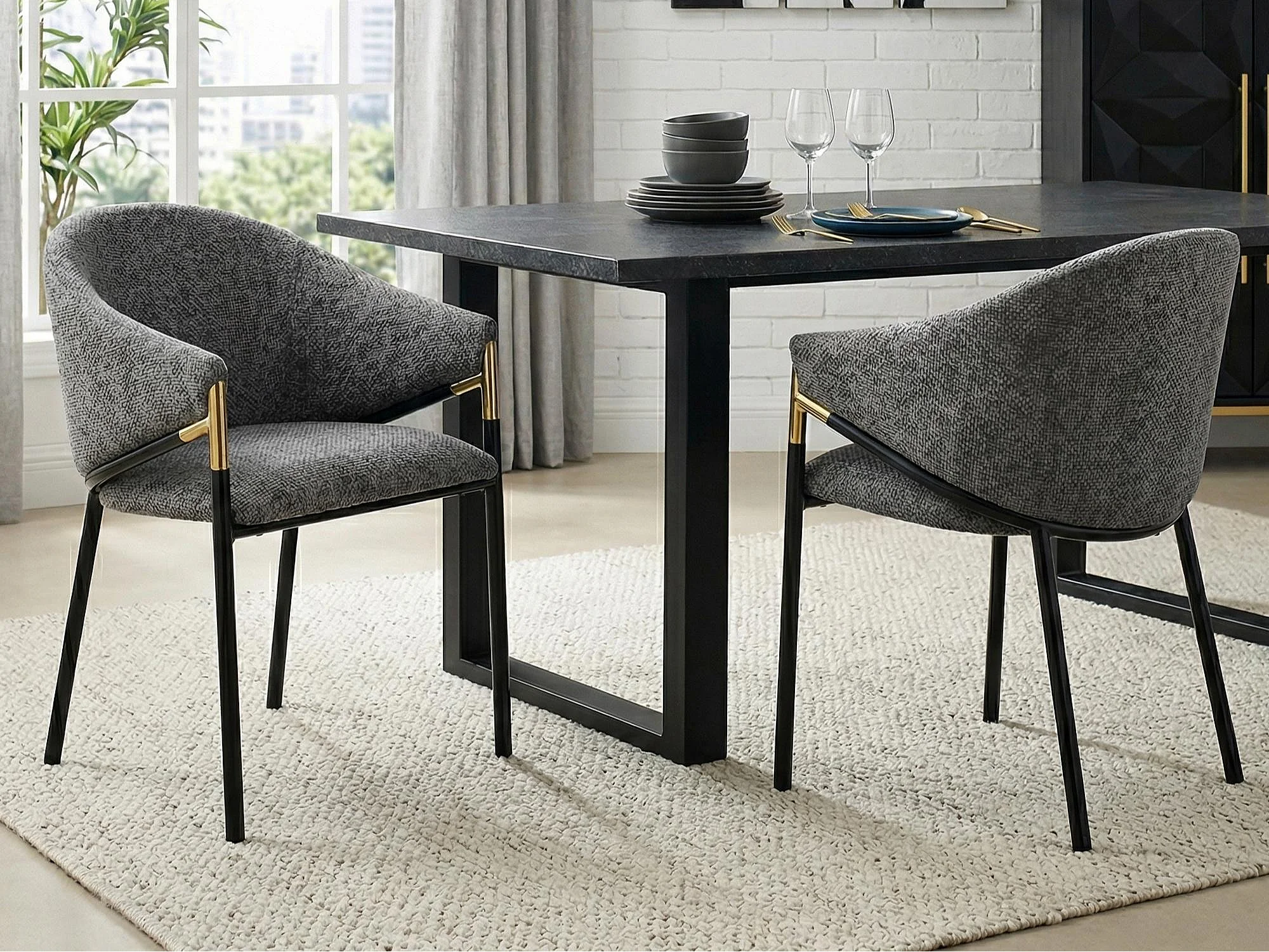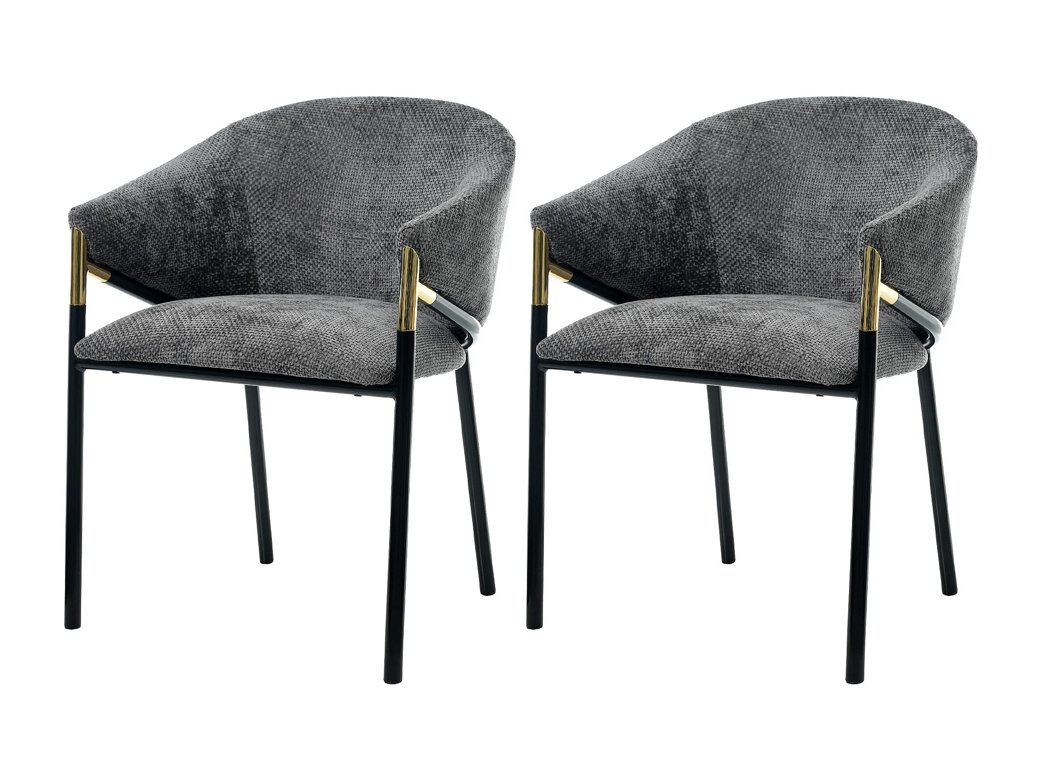 Set aus 2 Stühlen - Moderner Stil - Samtstoff - Armlehnen aus goldenem Edelstahl - Dicke Rückenlehne - Grau