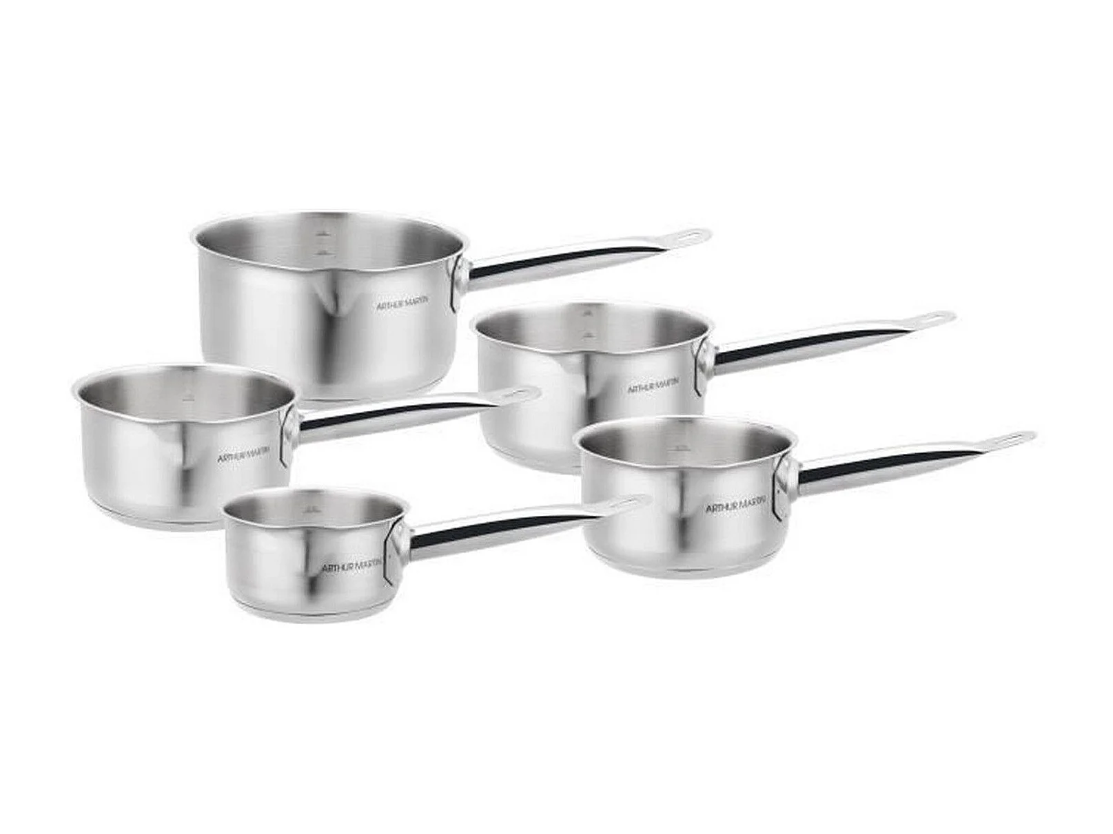 Set aus 5 Edelstahl-Töpfen mit Ausguss