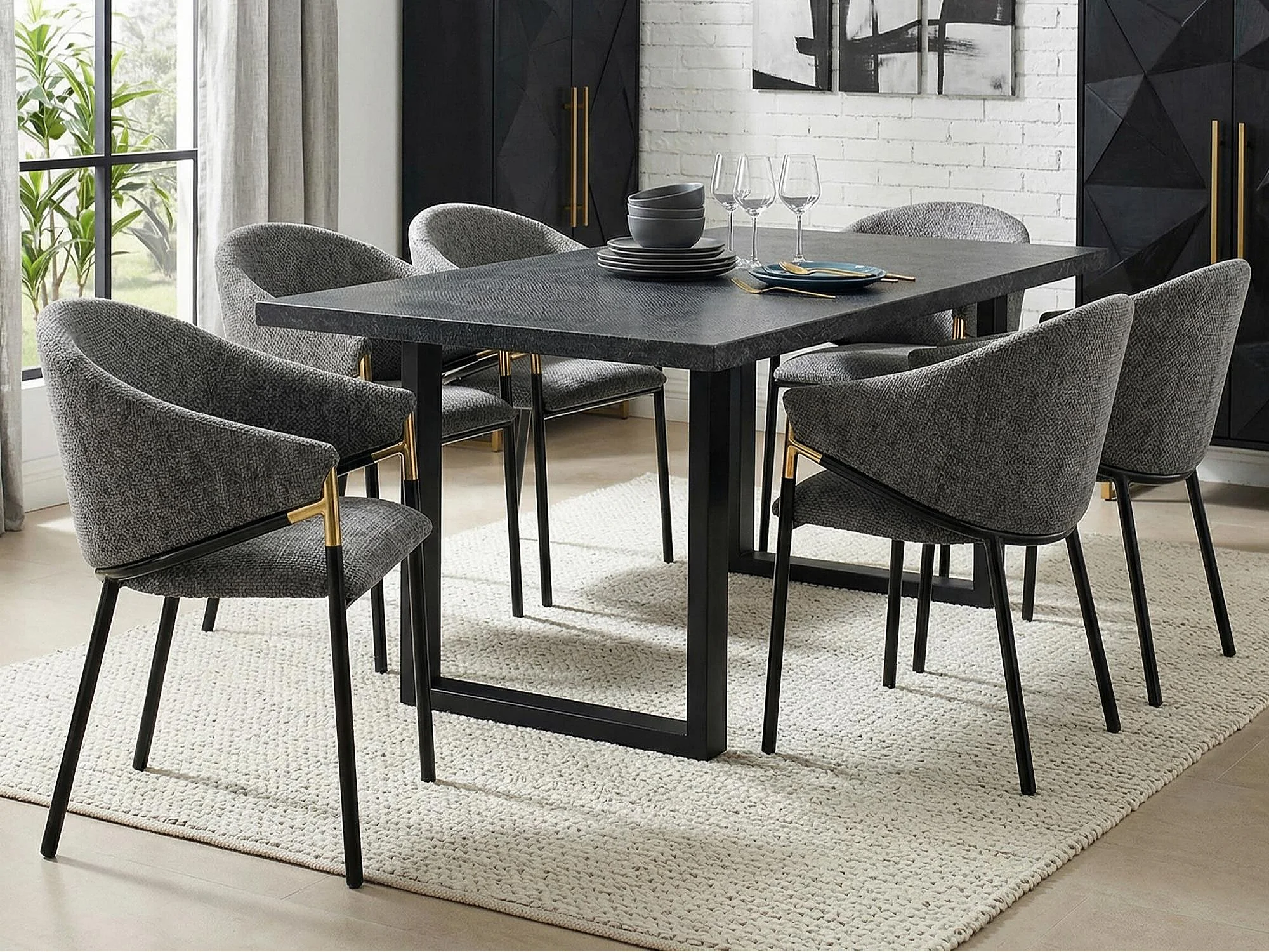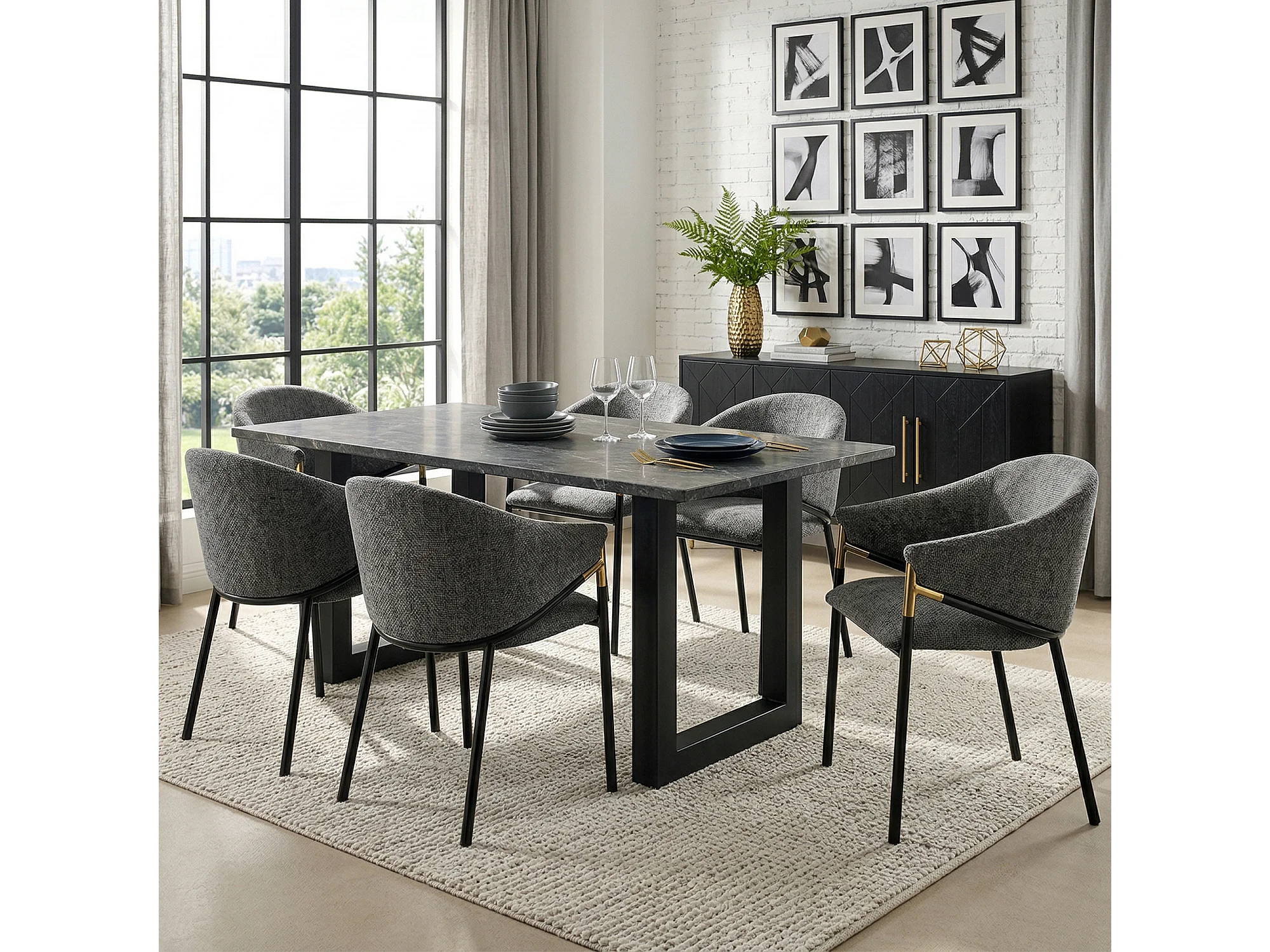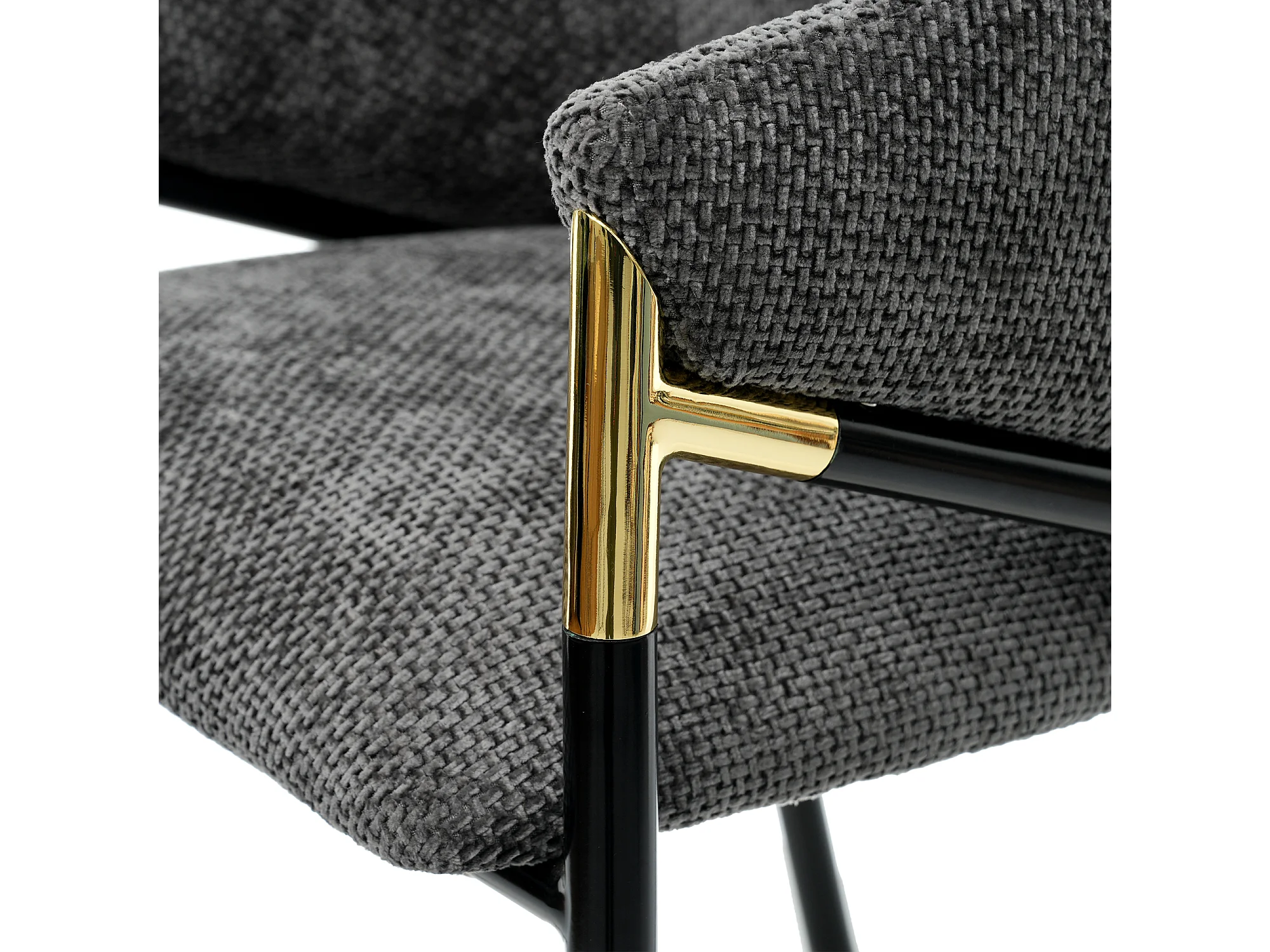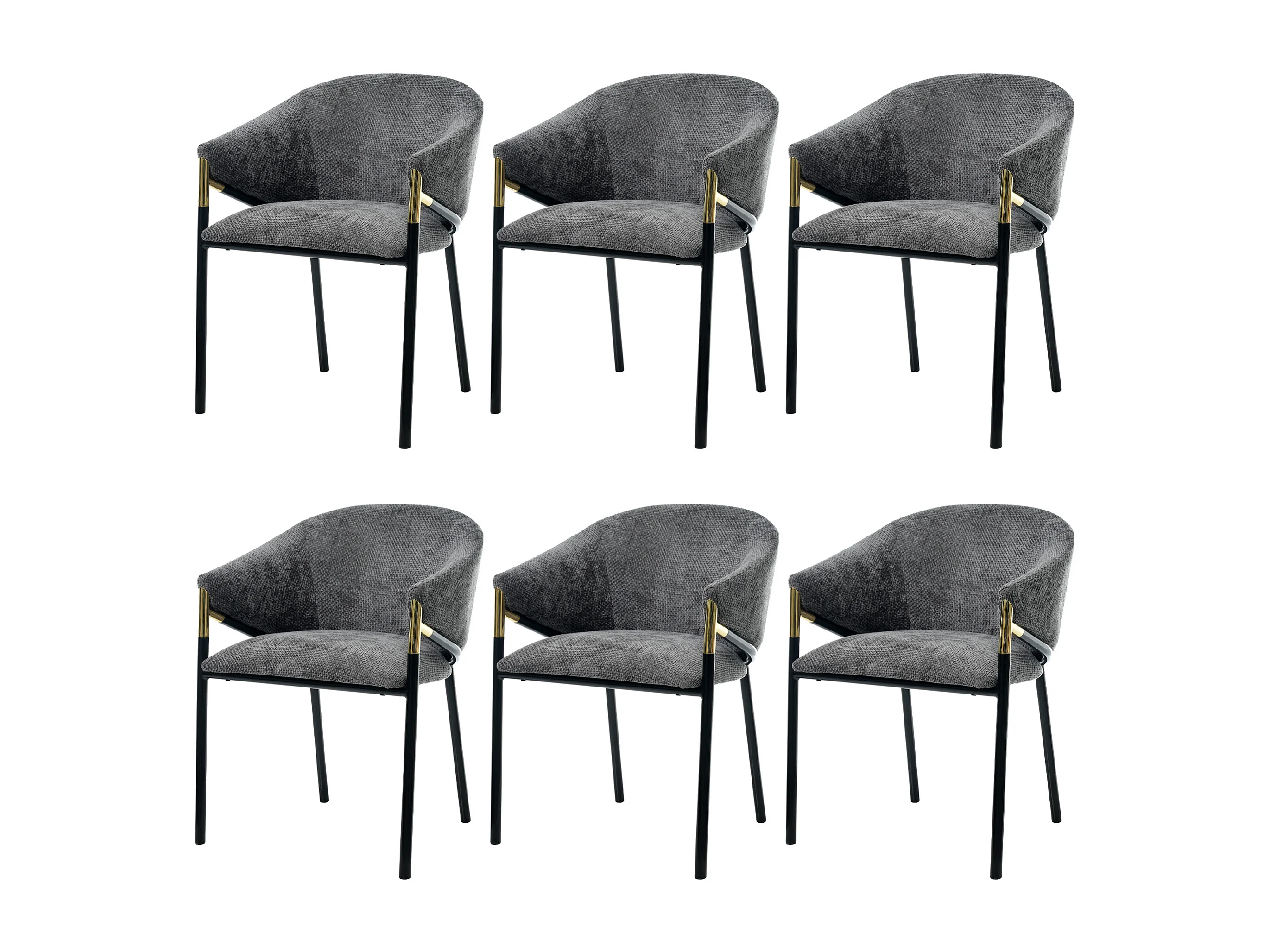 Set aus 6 Stühlen - Moderner Stil - Samtstoff - Armlehnen aus goldenem Edelstahl - Dicke Rückenlehne - Grau