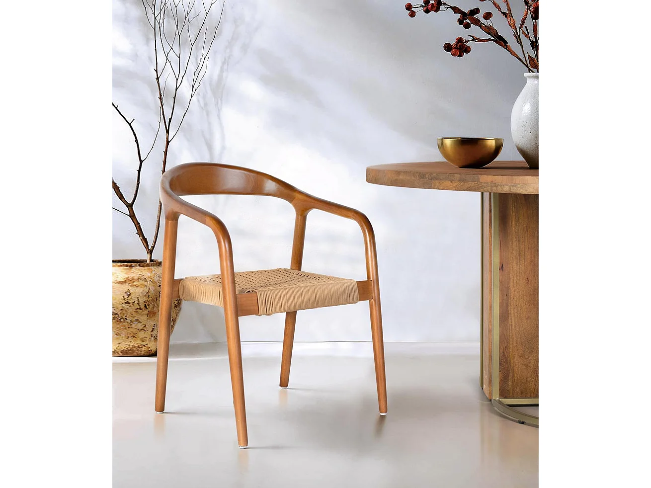 2er-Set Stühle mit Armlehnen aus Gummibaumholz.