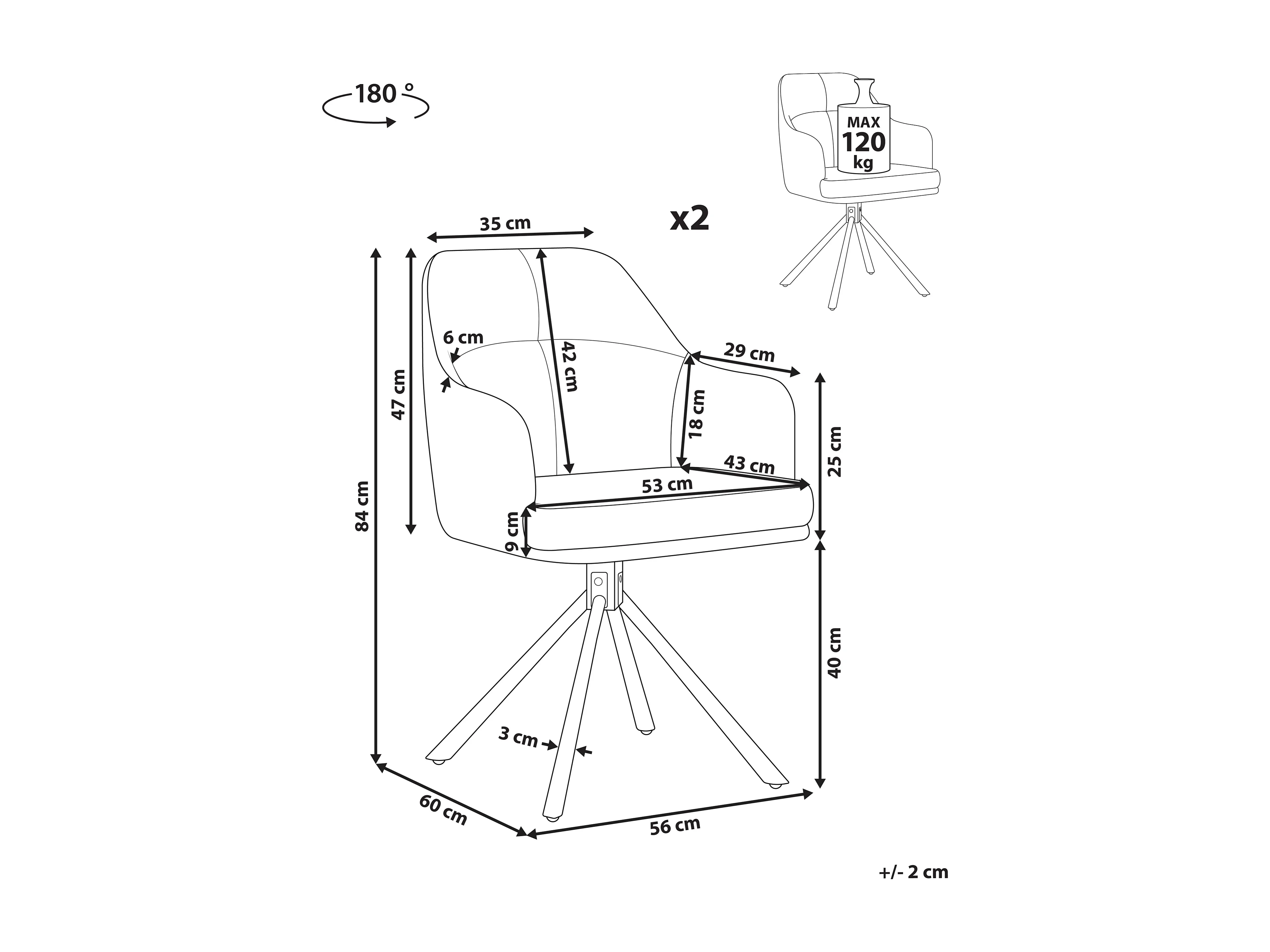 Esszimmerstuhl 2er Set Stoff beige gepolstert drehbar schwarze Metallbeine Mira