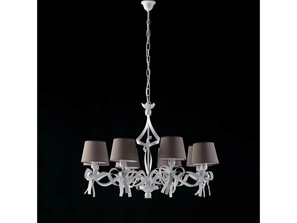 Belight - Lucy - Kronleuchter weiß, Shabby-Chic & PVC-Lampenschirme Ø16, Ø84, 8-flammig - BL184-8-BCO