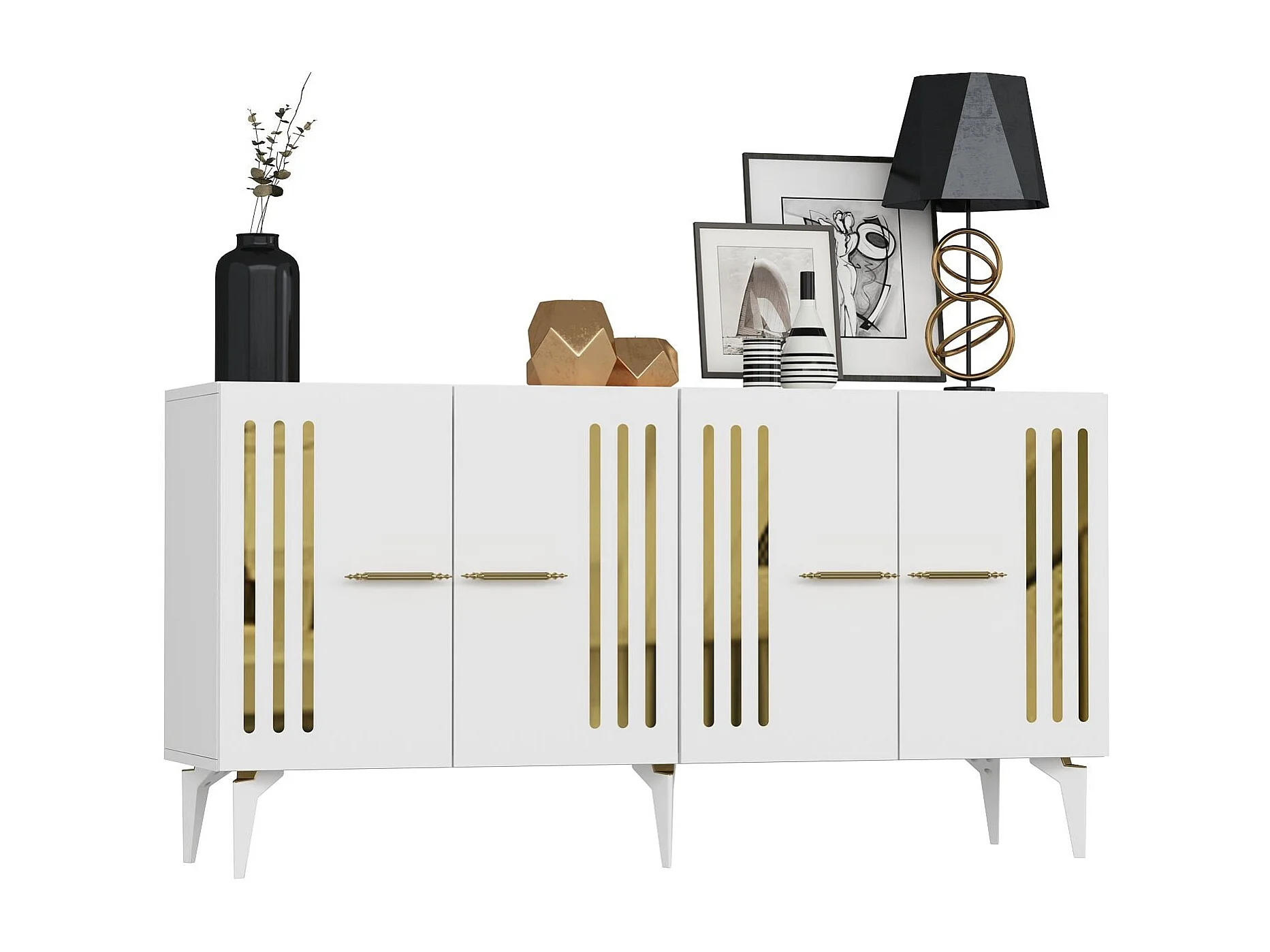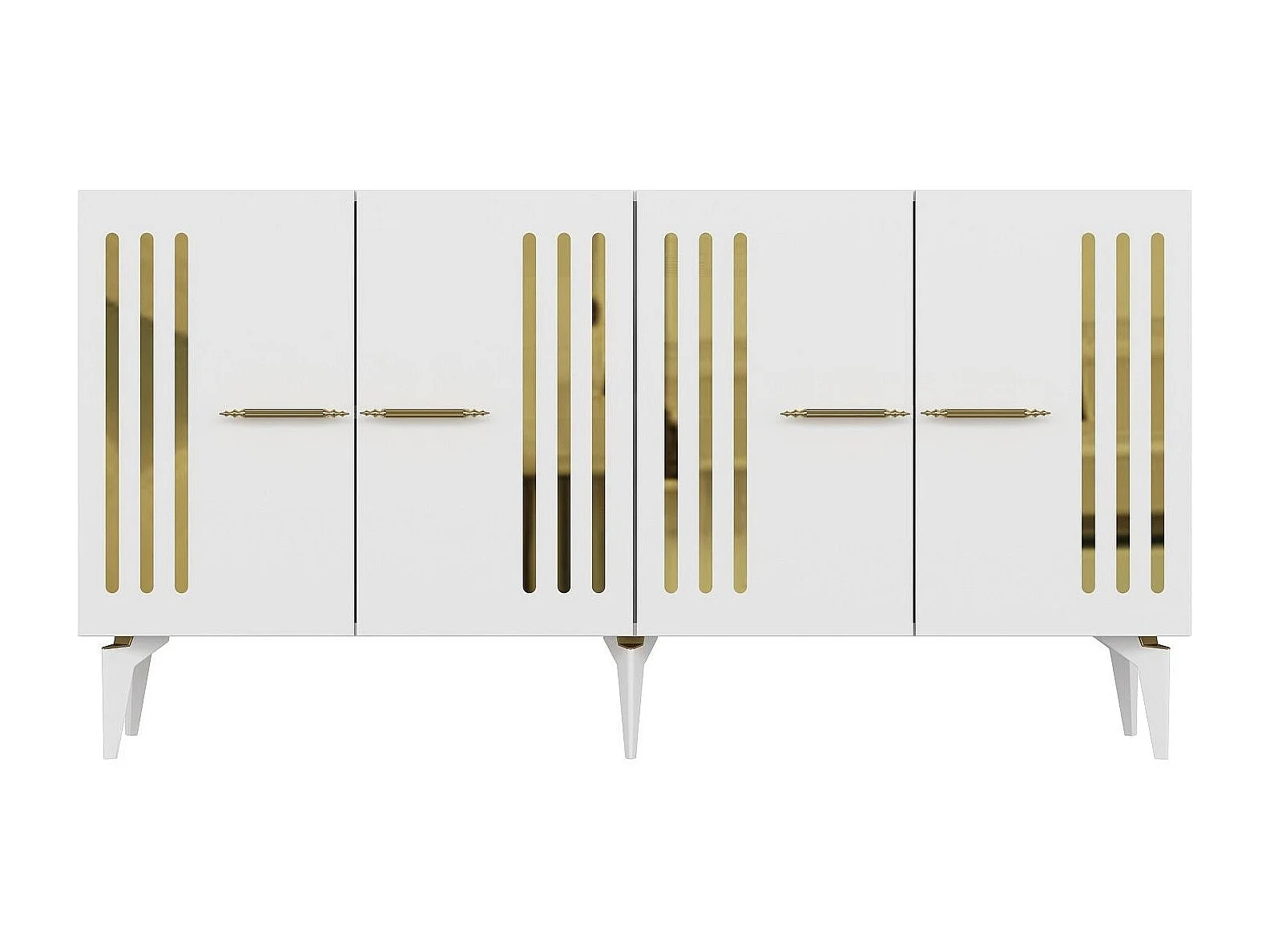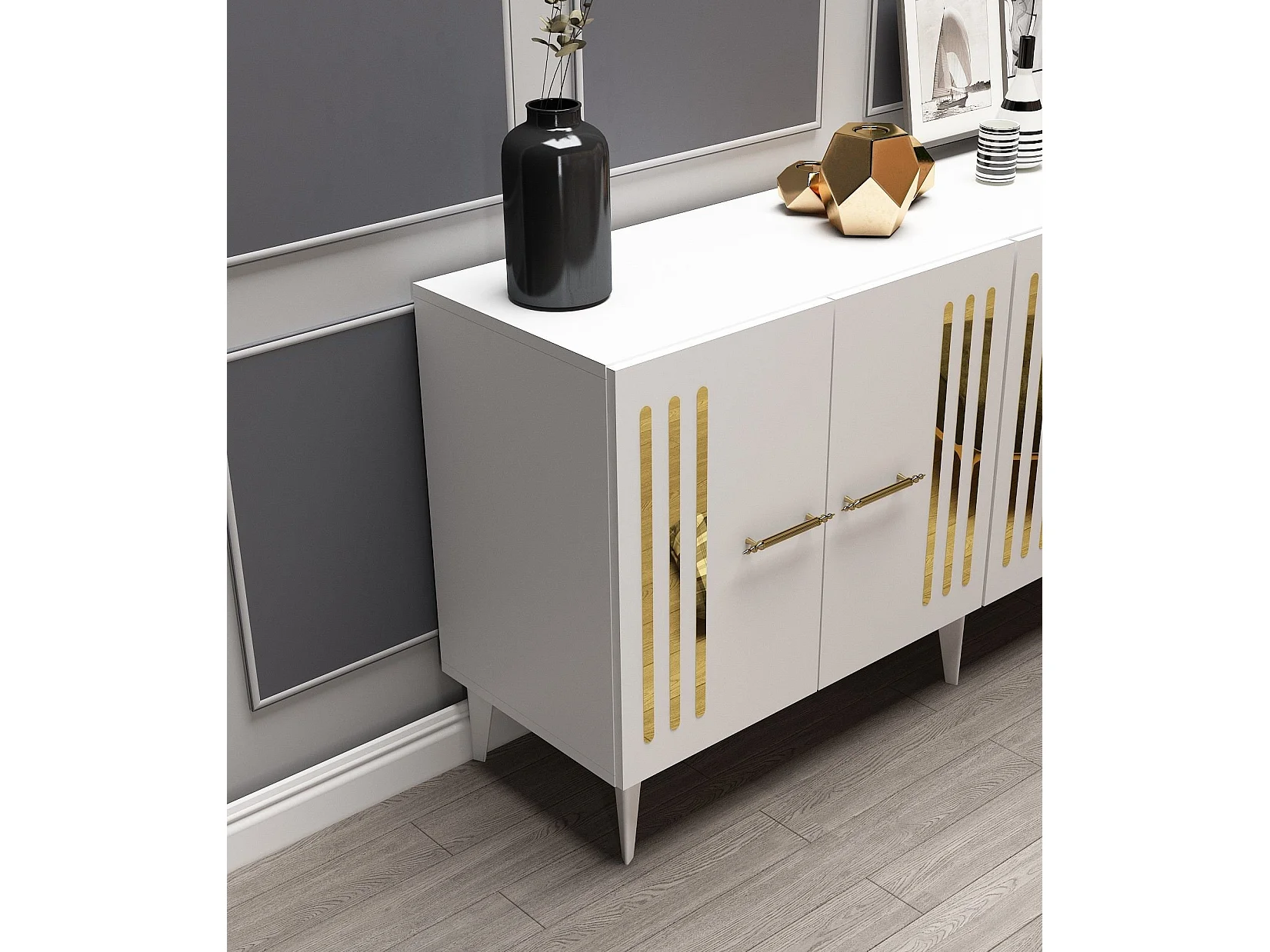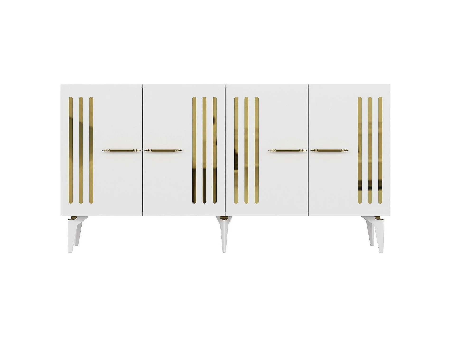 Sideboard – 150 cm x 79 cm x 40 cm – Weiß und Gold – Spanplatte