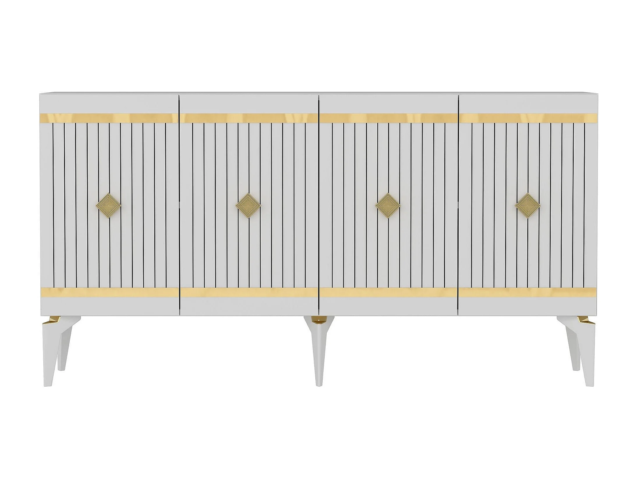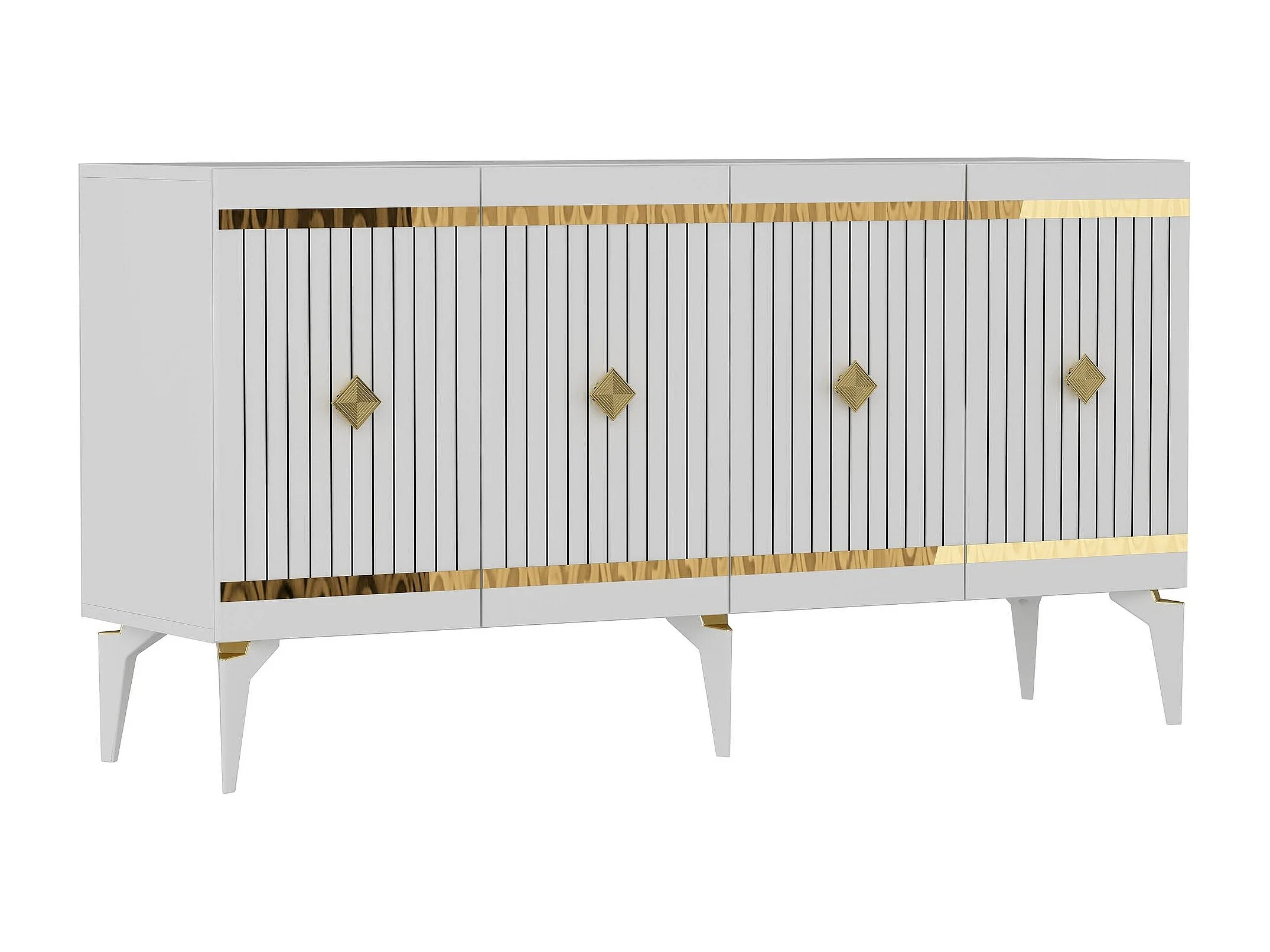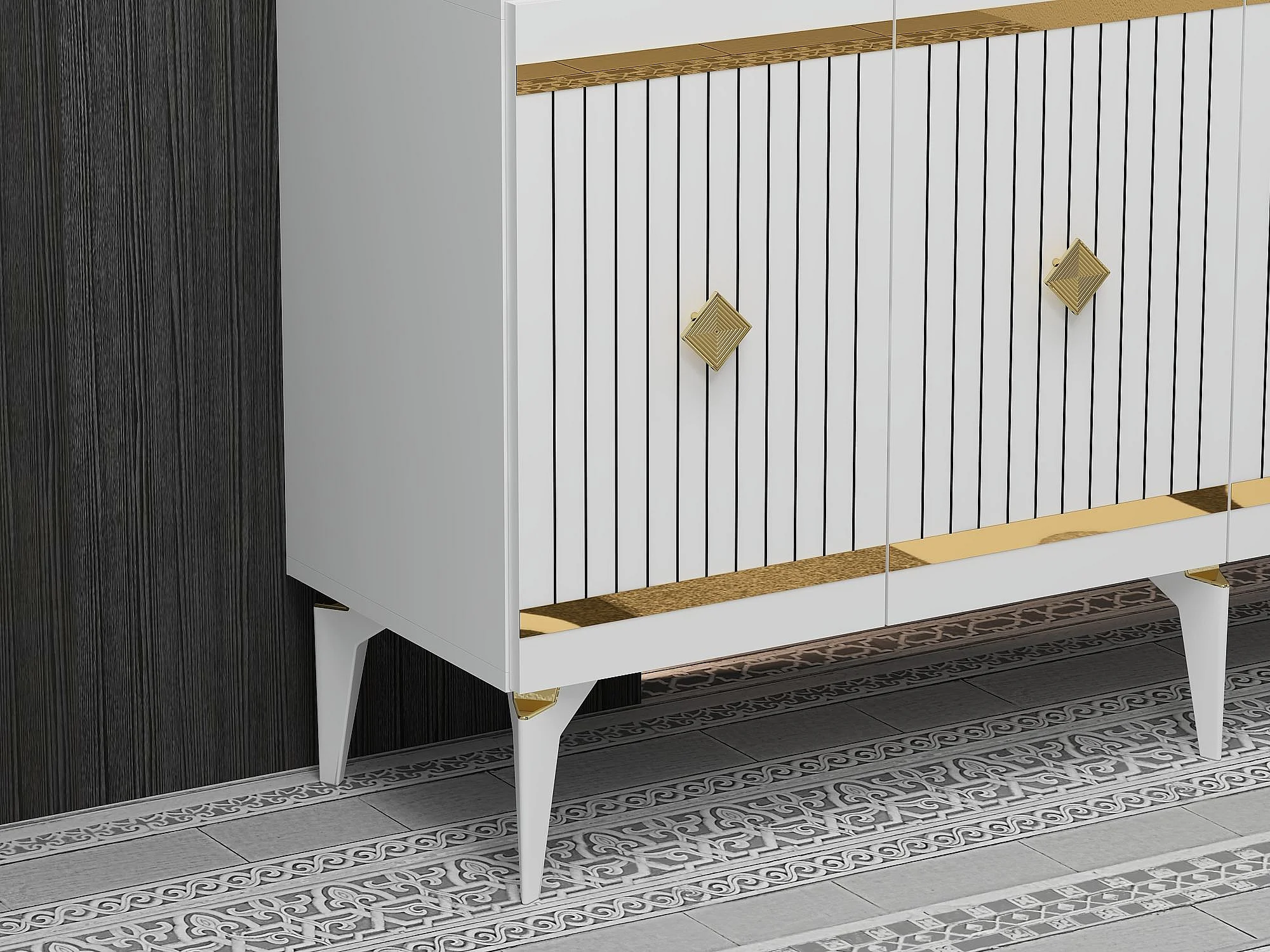 Sideboard – 150 cm x 79 cm x 40 cm – Weiß und Gold – Spanplatte