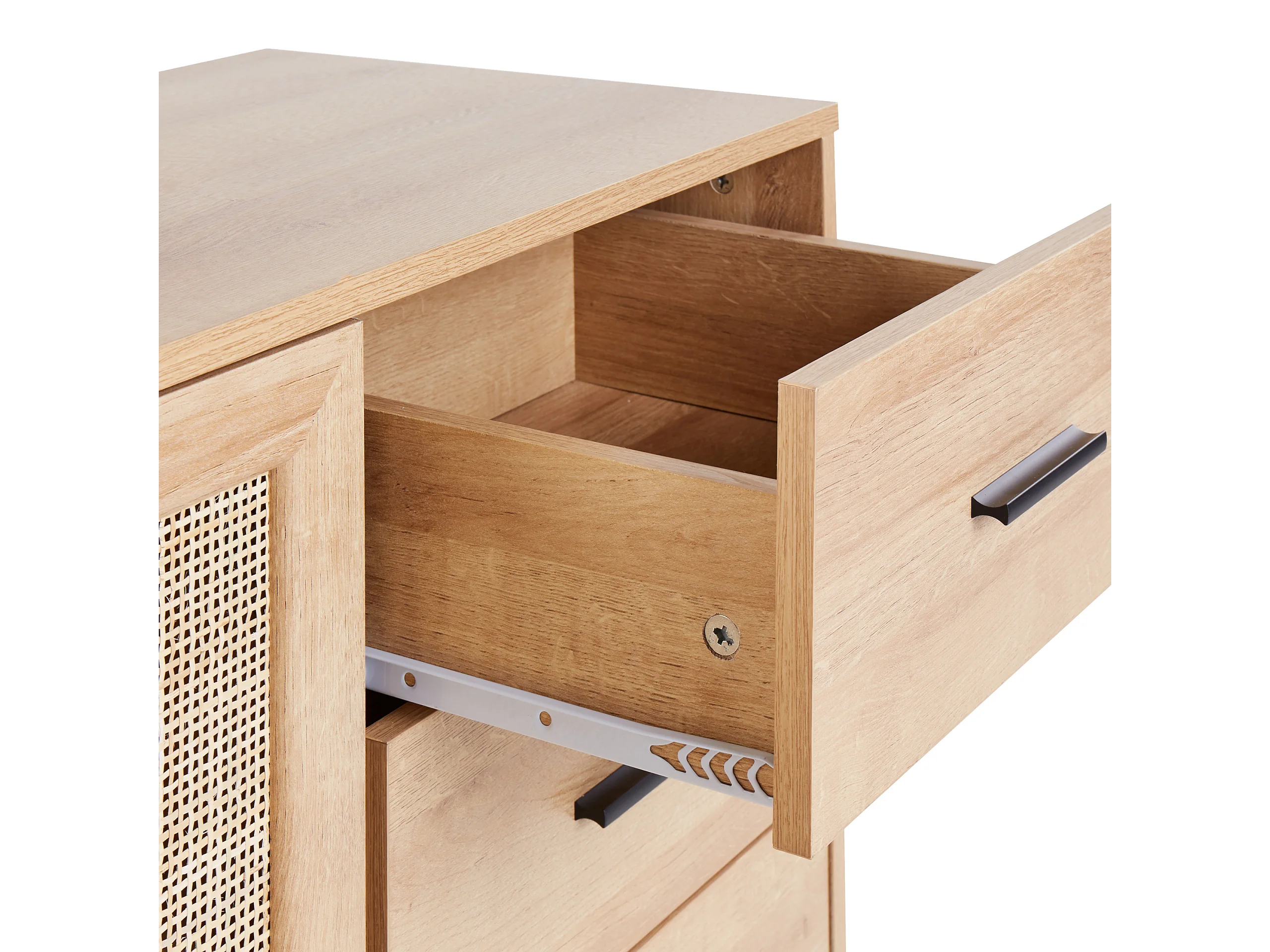Sideboard 3 Rattan-Türen 3 Schubladen heller Holzfarbton Metallbeine Pasco