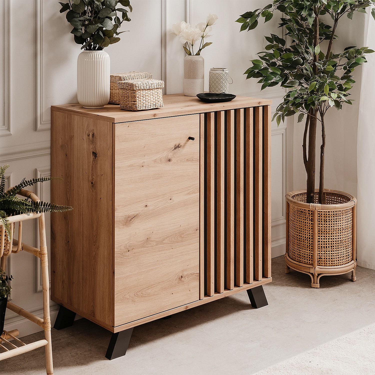 Sideboard 80x85x40 cm Eiche Industrieller Look