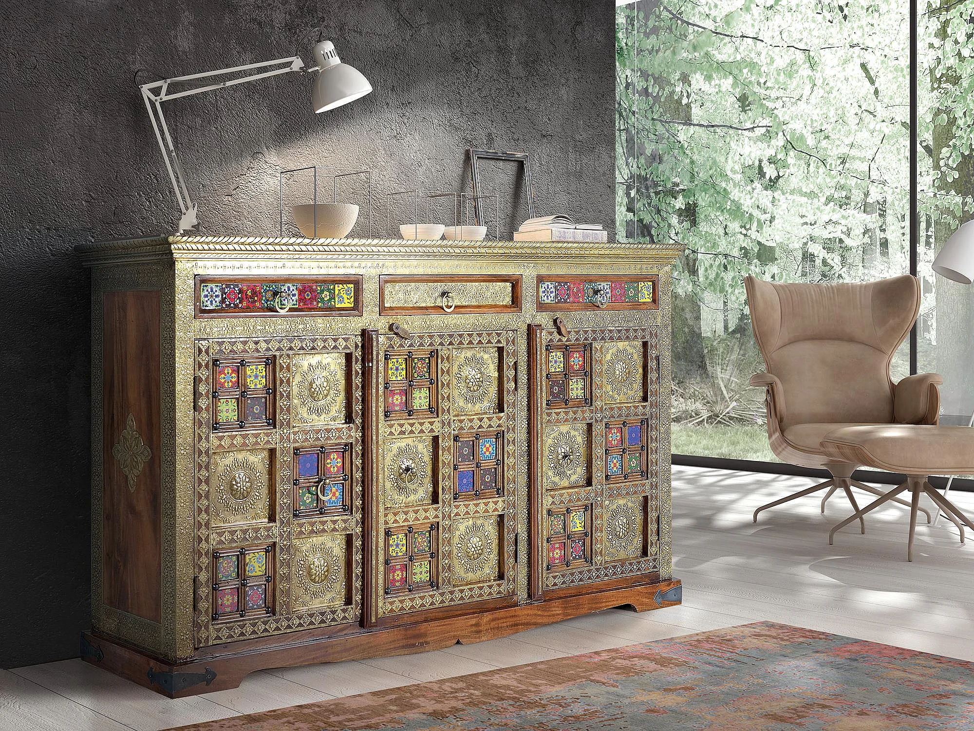Sideboard aus Mangoholz und Metall