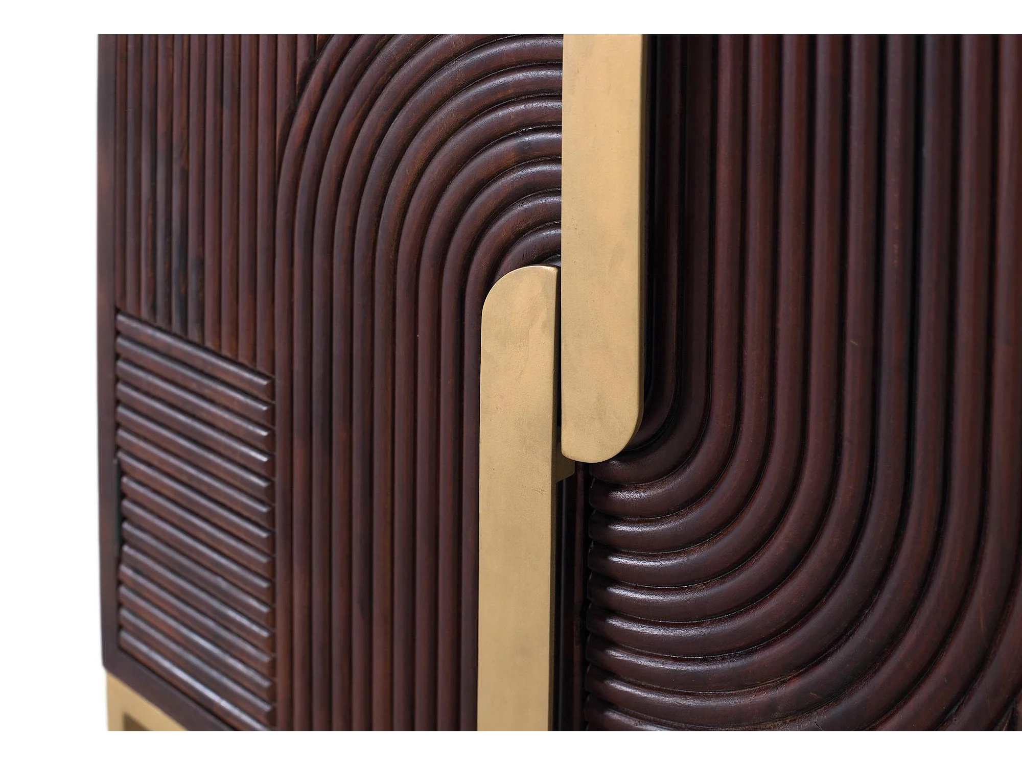 Sideboard aus massivem Mangoholz mit goldenen Details