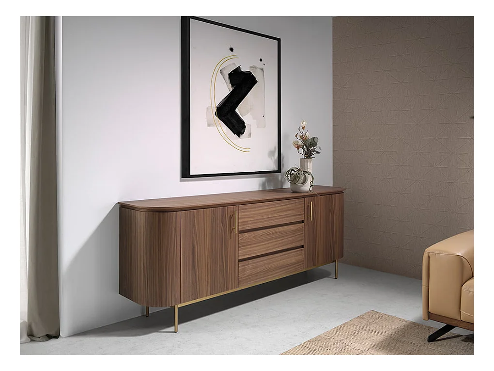 Sideboard Nussbaum und goldener polierter Stahl 3228 ANGEL CERDA