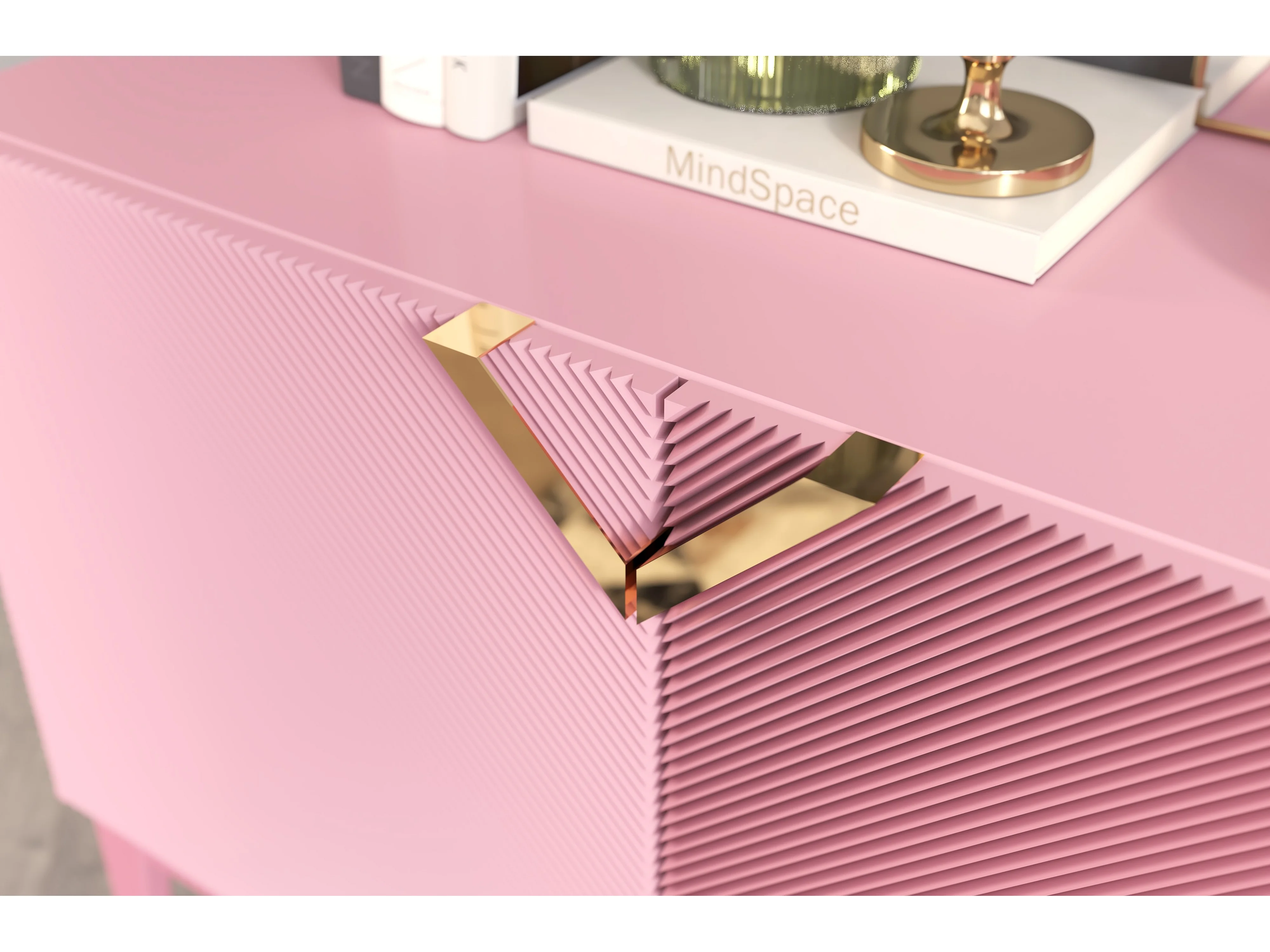 Sideboard Demi long, pink-gold, mit gefrästen fronten, massive buche