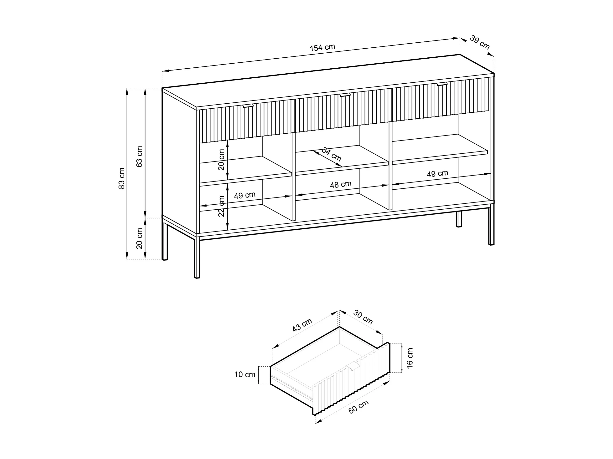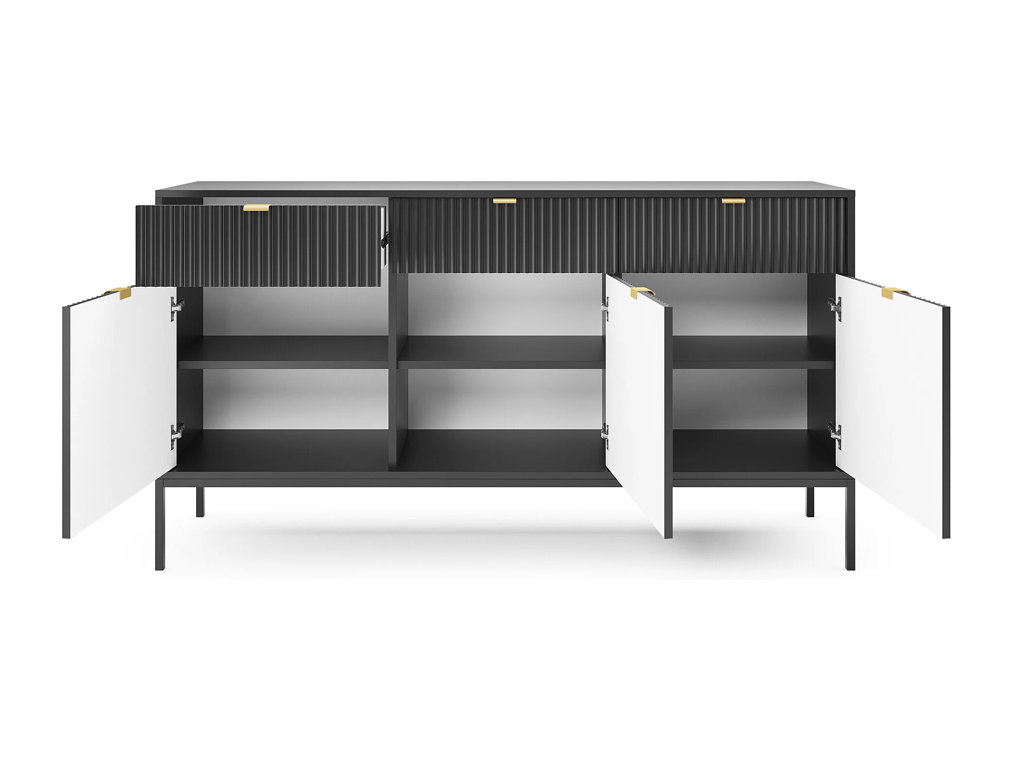 Dreitürige Kommode - 154 cm - schwarz mit schwarzen Beinen - VELLORE