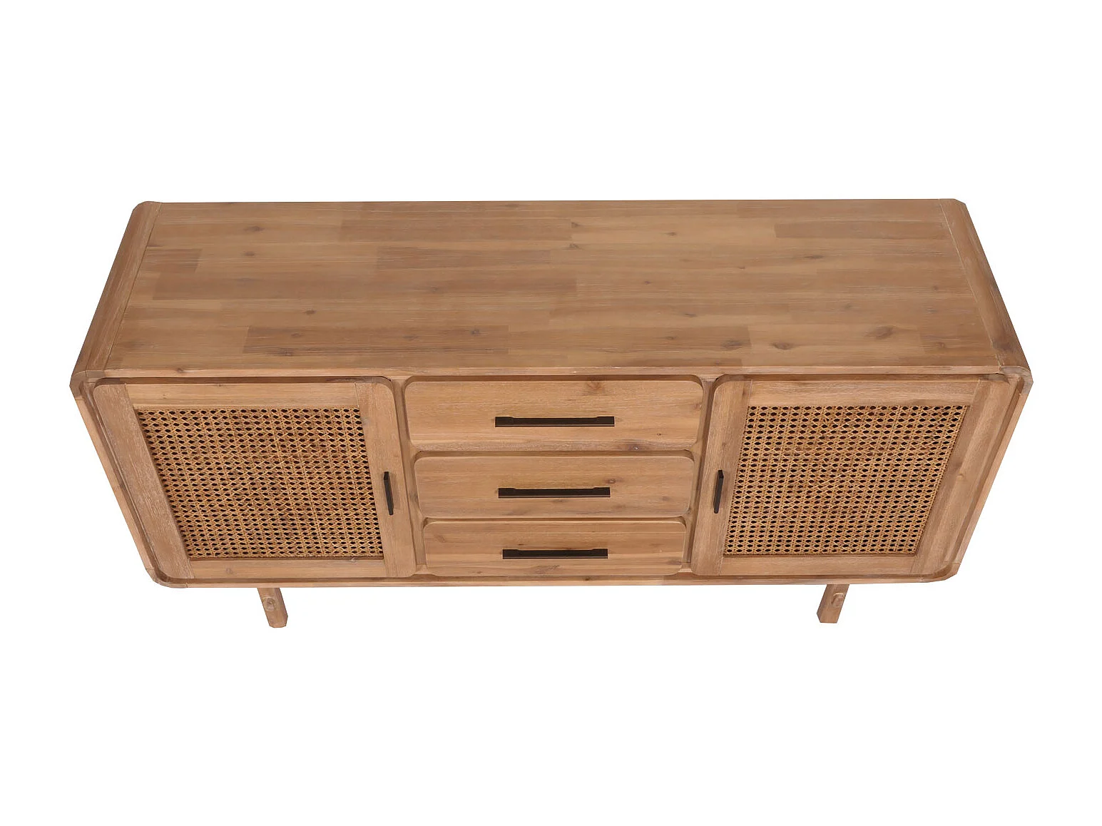 Sideboard MCW-M47, Schrank Kommode Highboard, Staufächer Schublade, Rattan Akazie Massiv-Holz gebeizt 83x160x45cm 47kg
