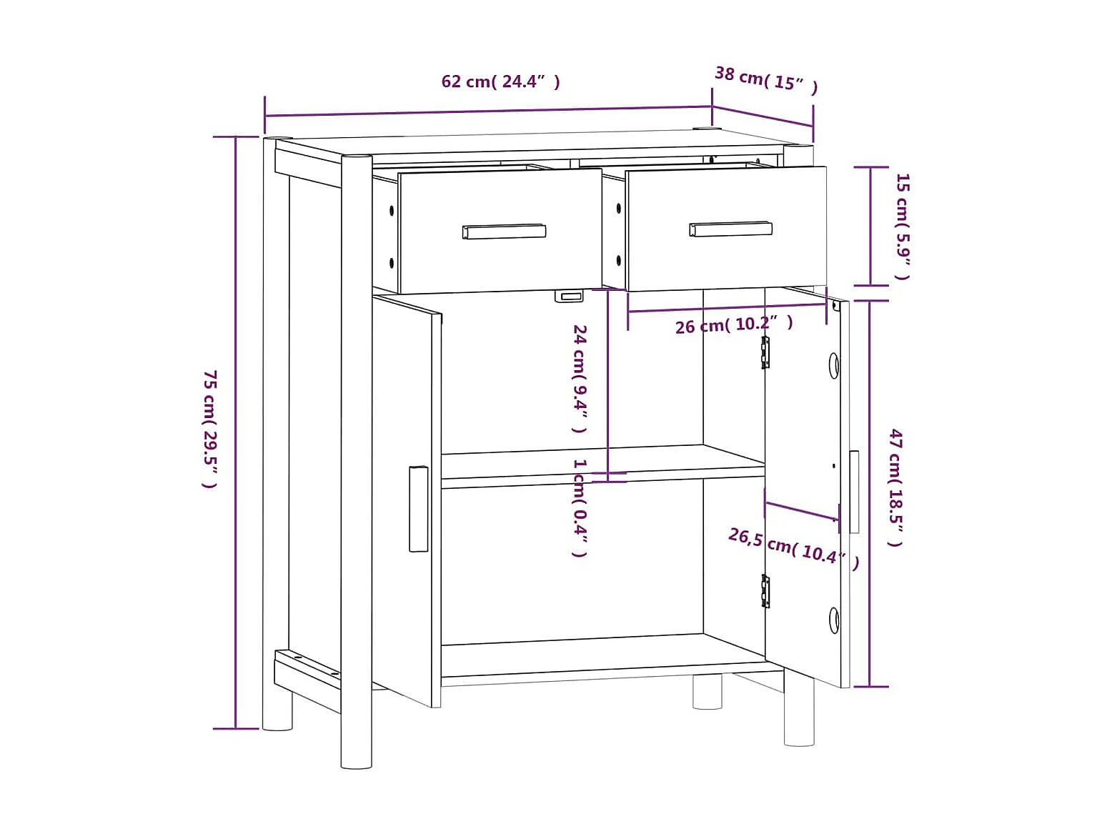 Sideboard Schwarz 62x38x75 cm Holzwerkstoff