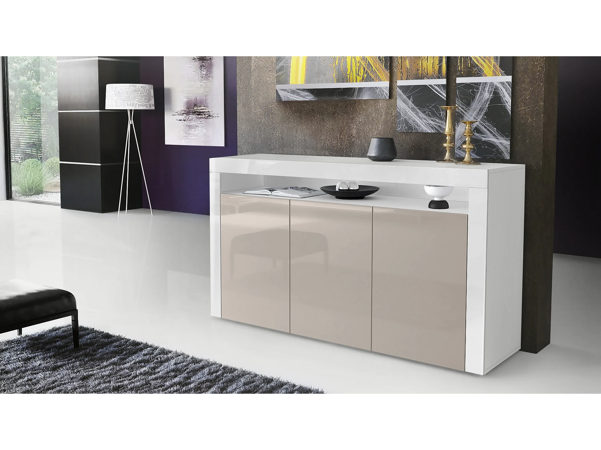 SIDEBOARD Valencia Sandgrau Hochglanz / Weiß Hochglanz