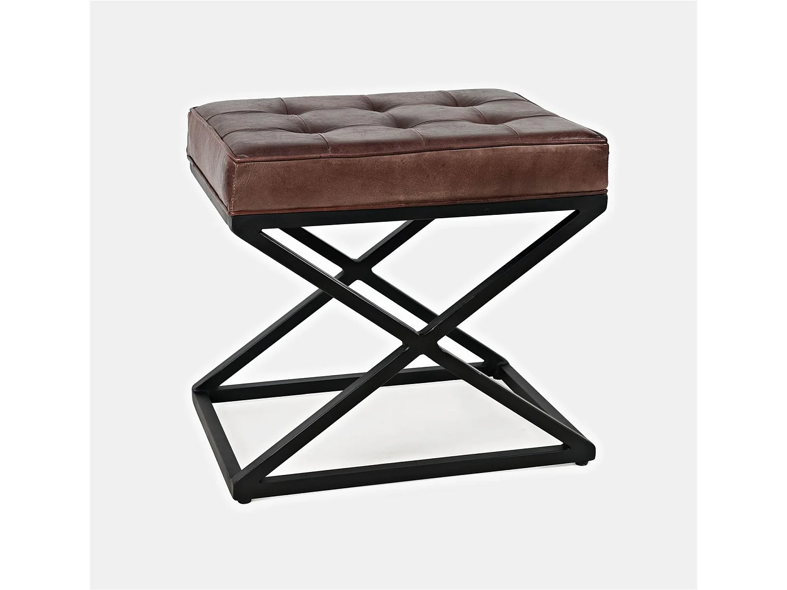 Bank mit gepolsterter Sitzfläche aus Leder und Beinen aus Eisen