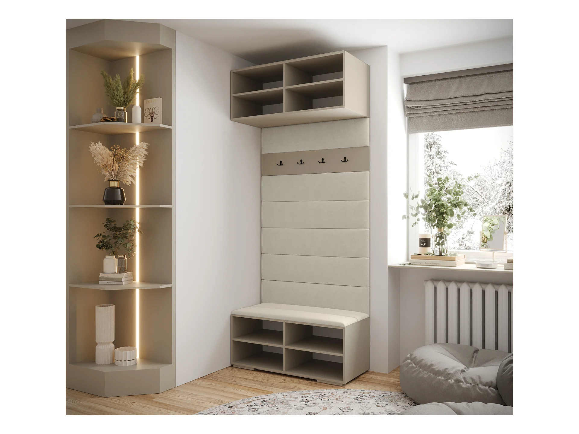 Garderoben-Set 110x38x186 cm - 3 Türen und 2 Schubladen - Mit Kleiderstange - Offene Regale - Beige und grau