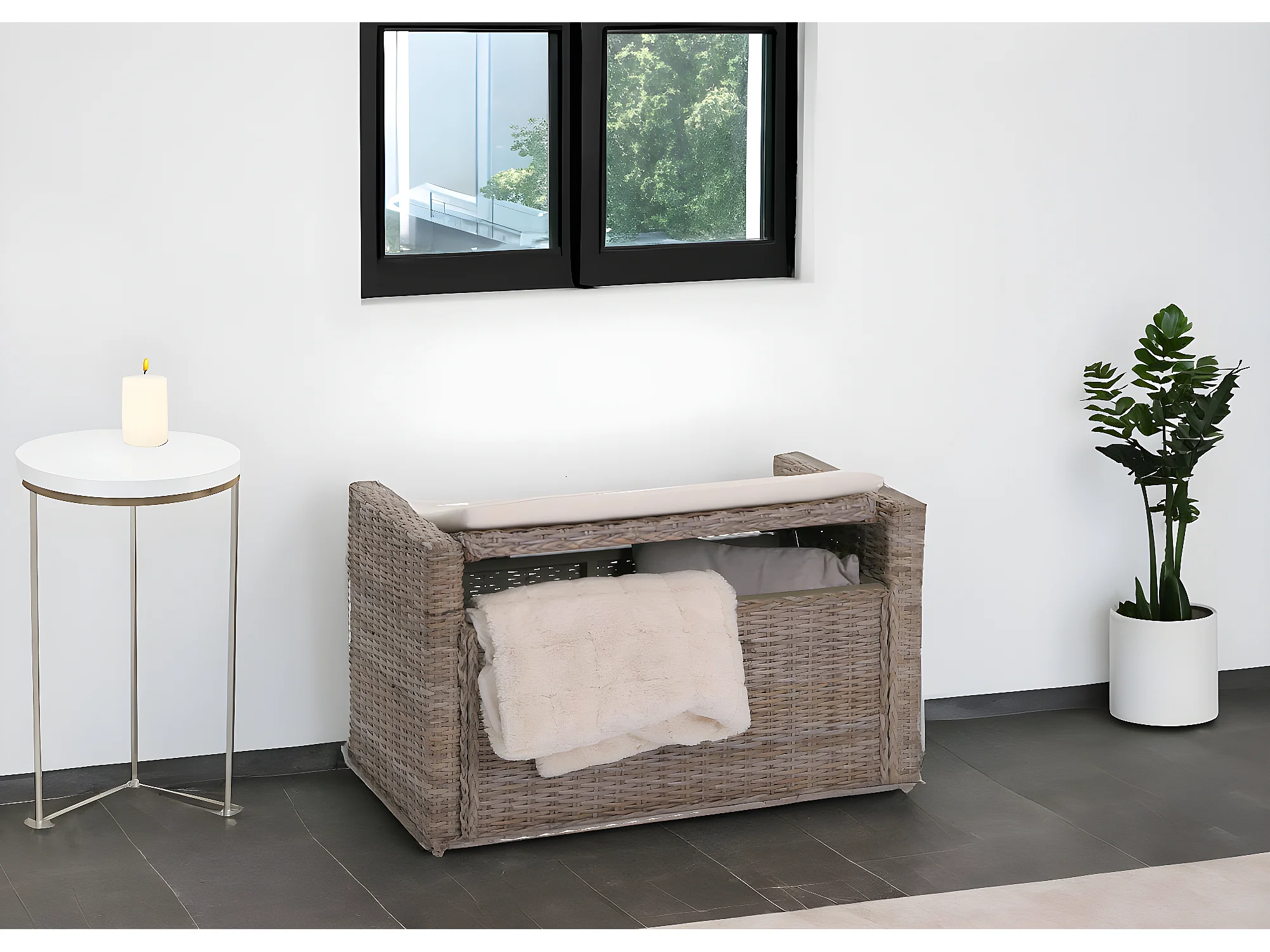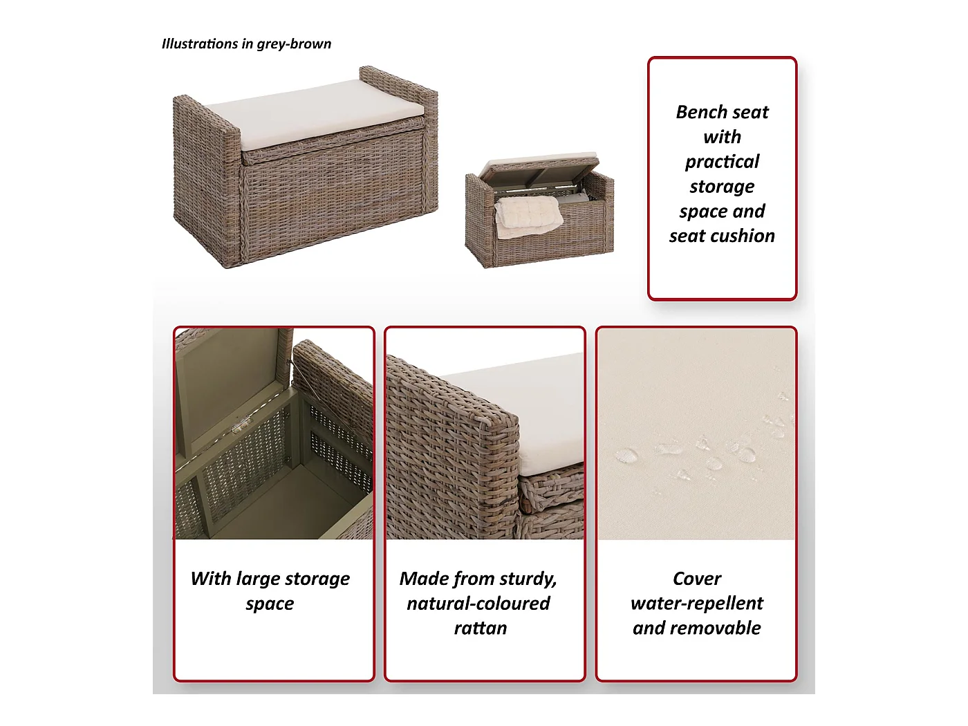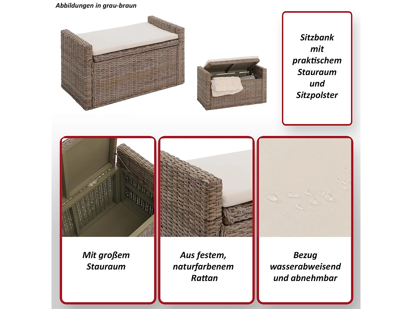 Sitzbank Genua Rattan Staufach, Kubu grau
