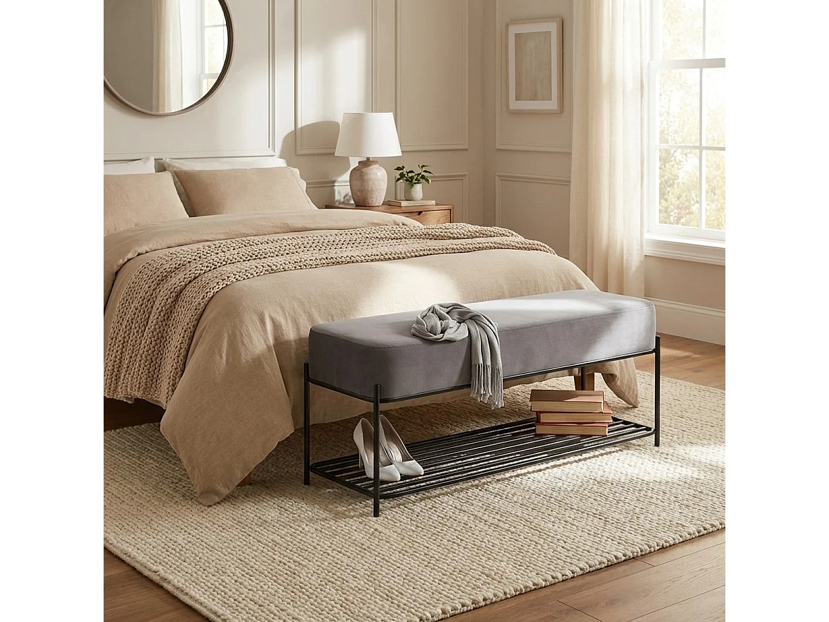 Sitzbank Schuhregal Eingang modernes Design Schwarz Samt Grau Degas - Dunkel Grau