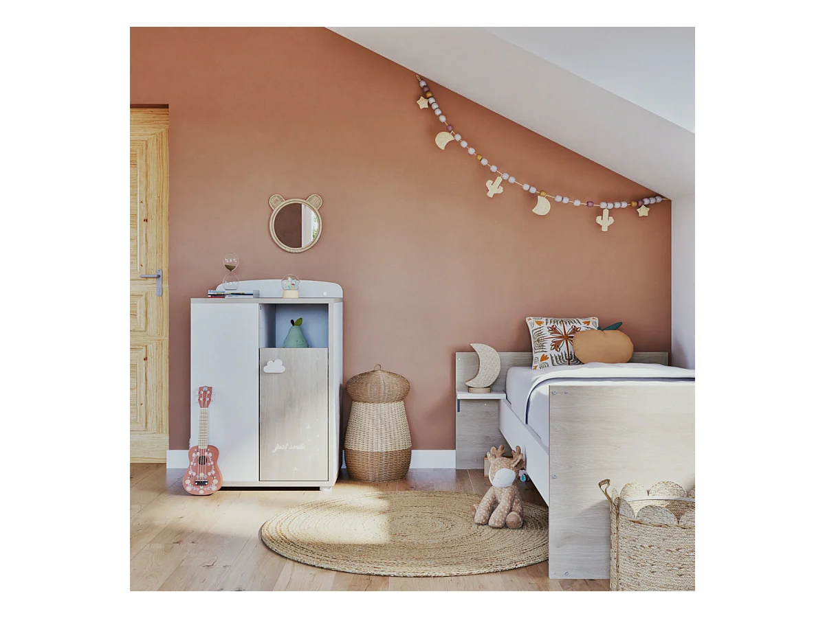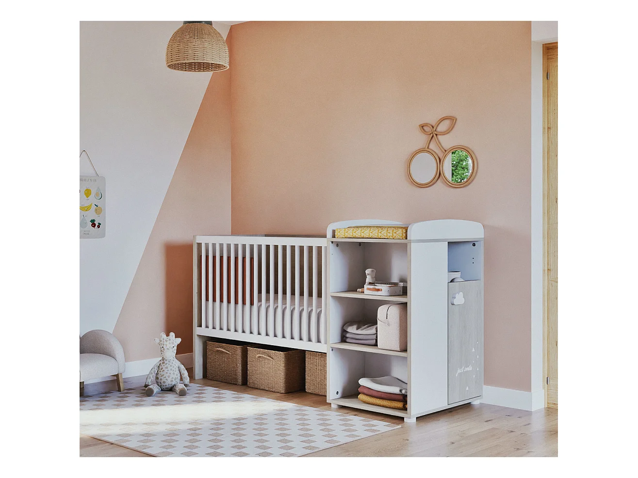 Babybett Lapinou 120x60 cm Akazie Hell und Weiß - 3 Verstellbare Positionen - Französische Herstellung