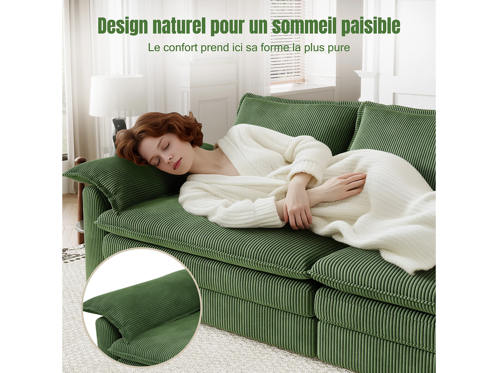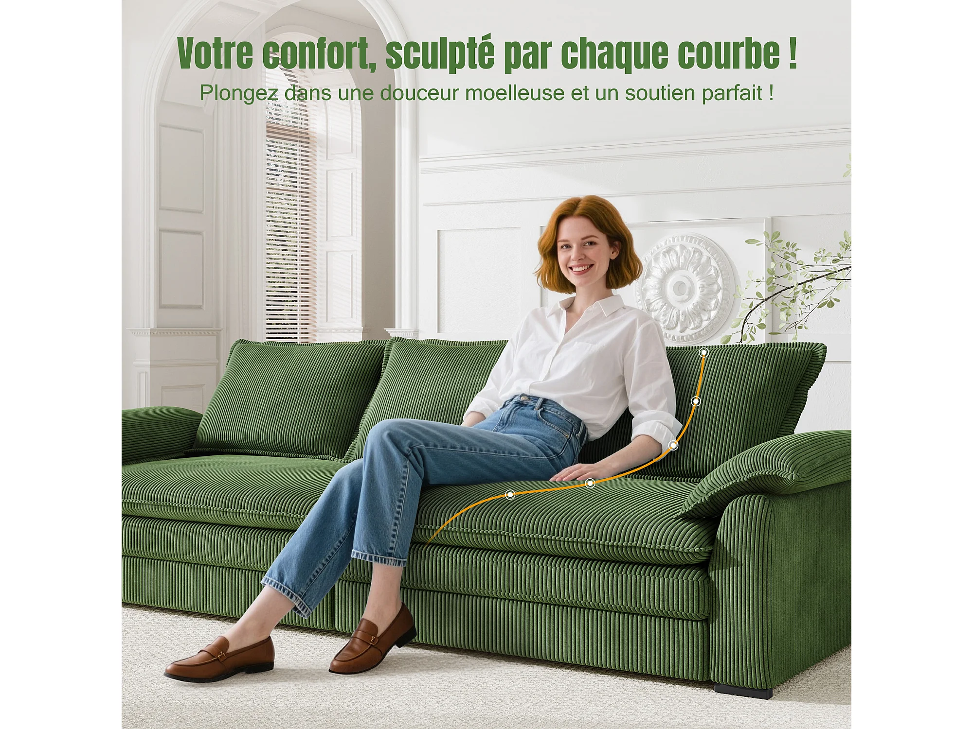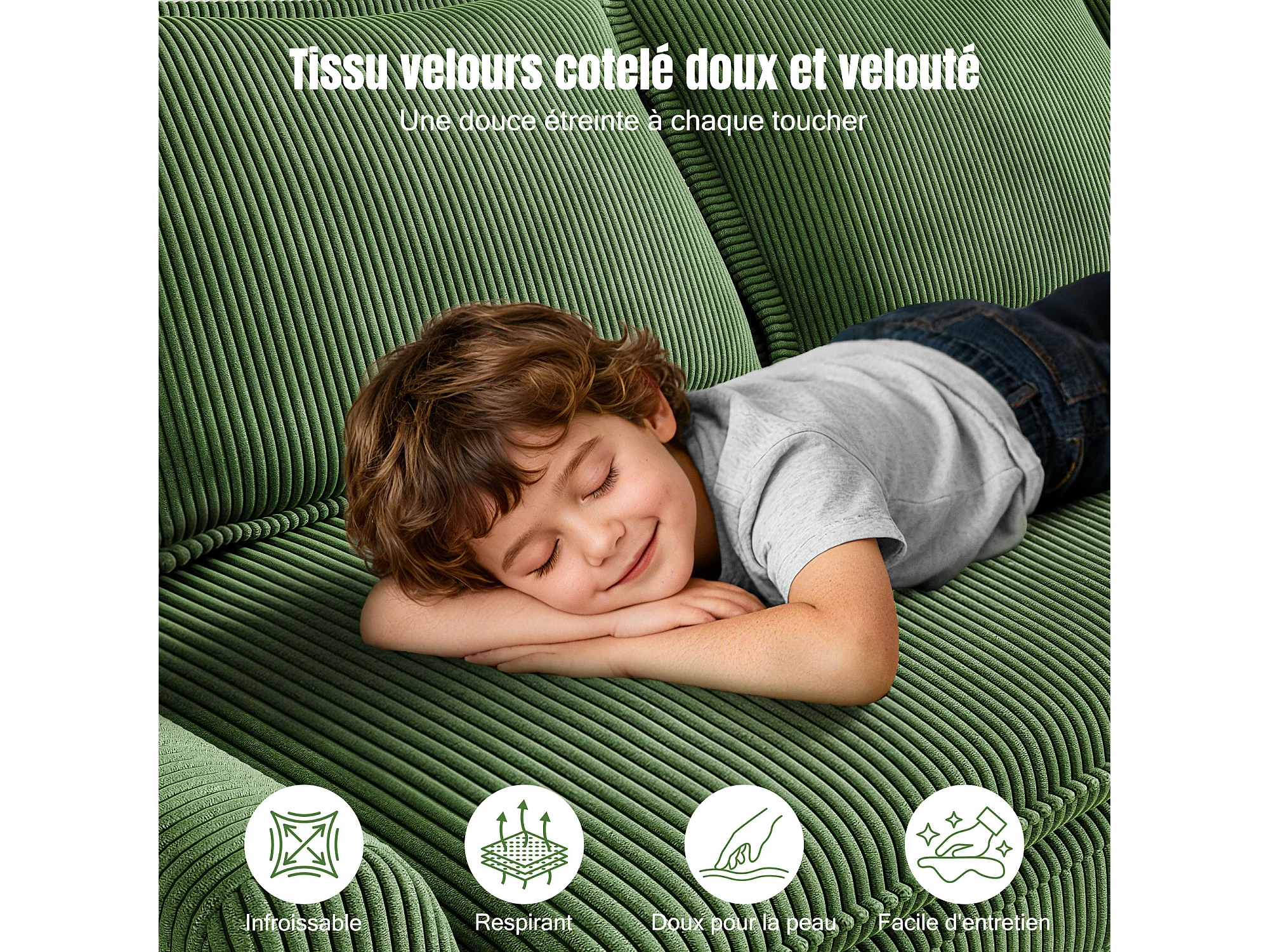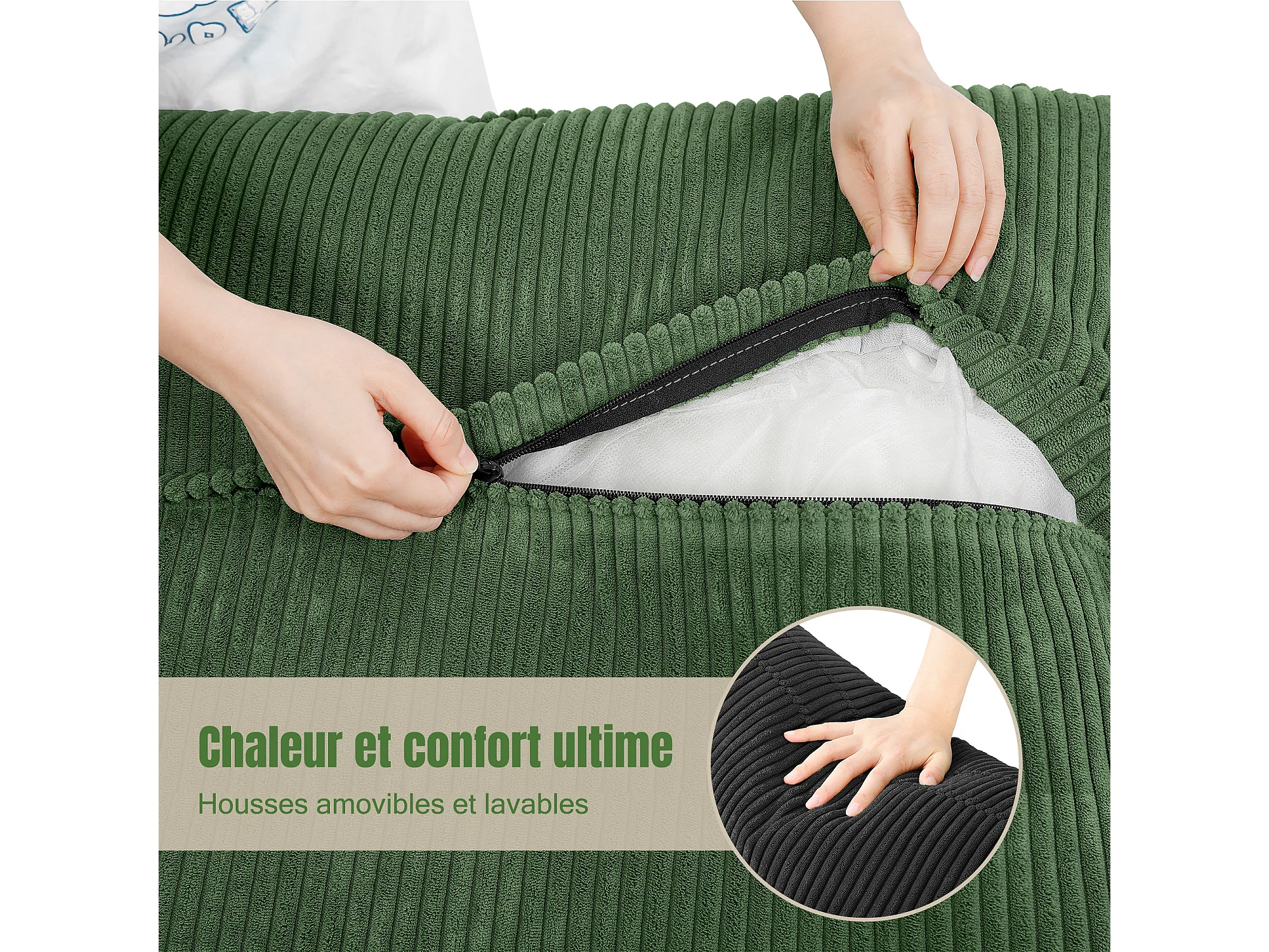 Sofa 3-sitzig in Rippvelours, mit 2 Armlehnkissen, abnehmbar und waschbar, 265x86x88cm, Grün
