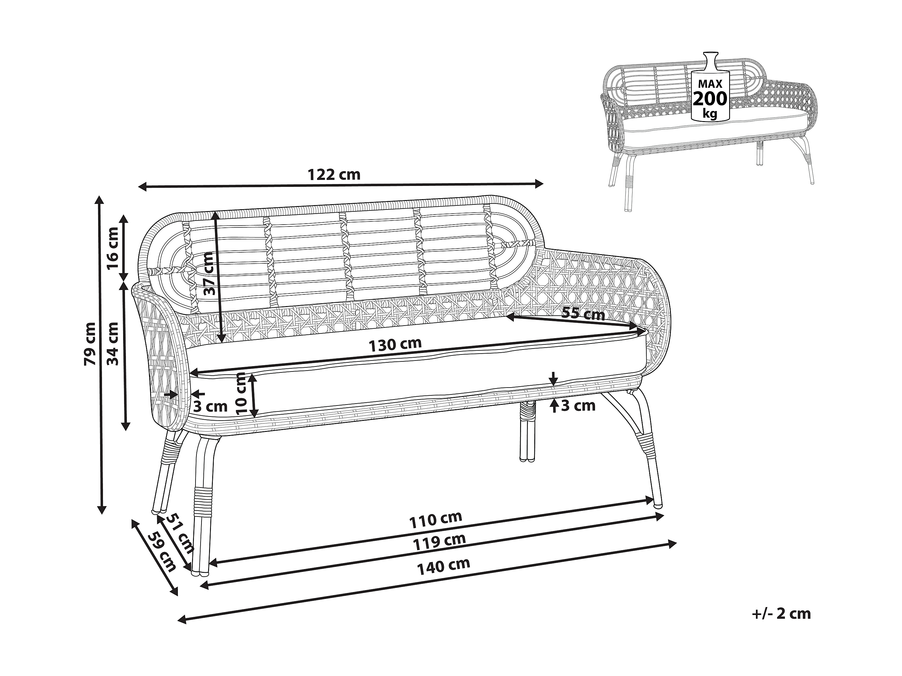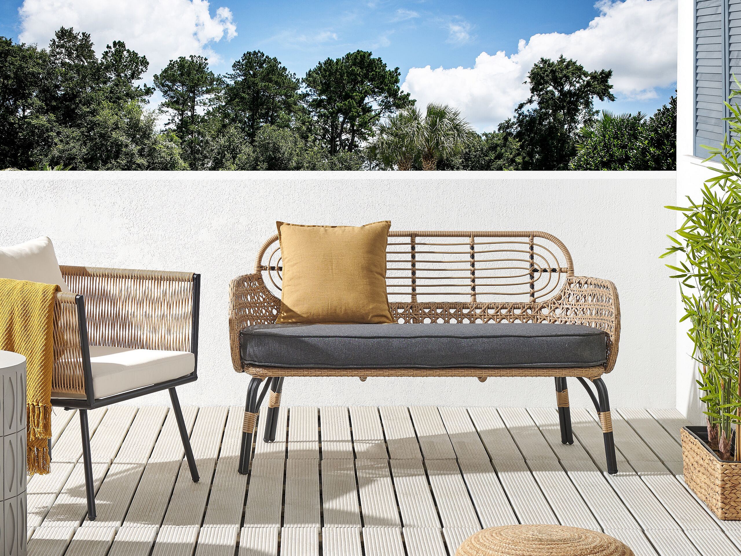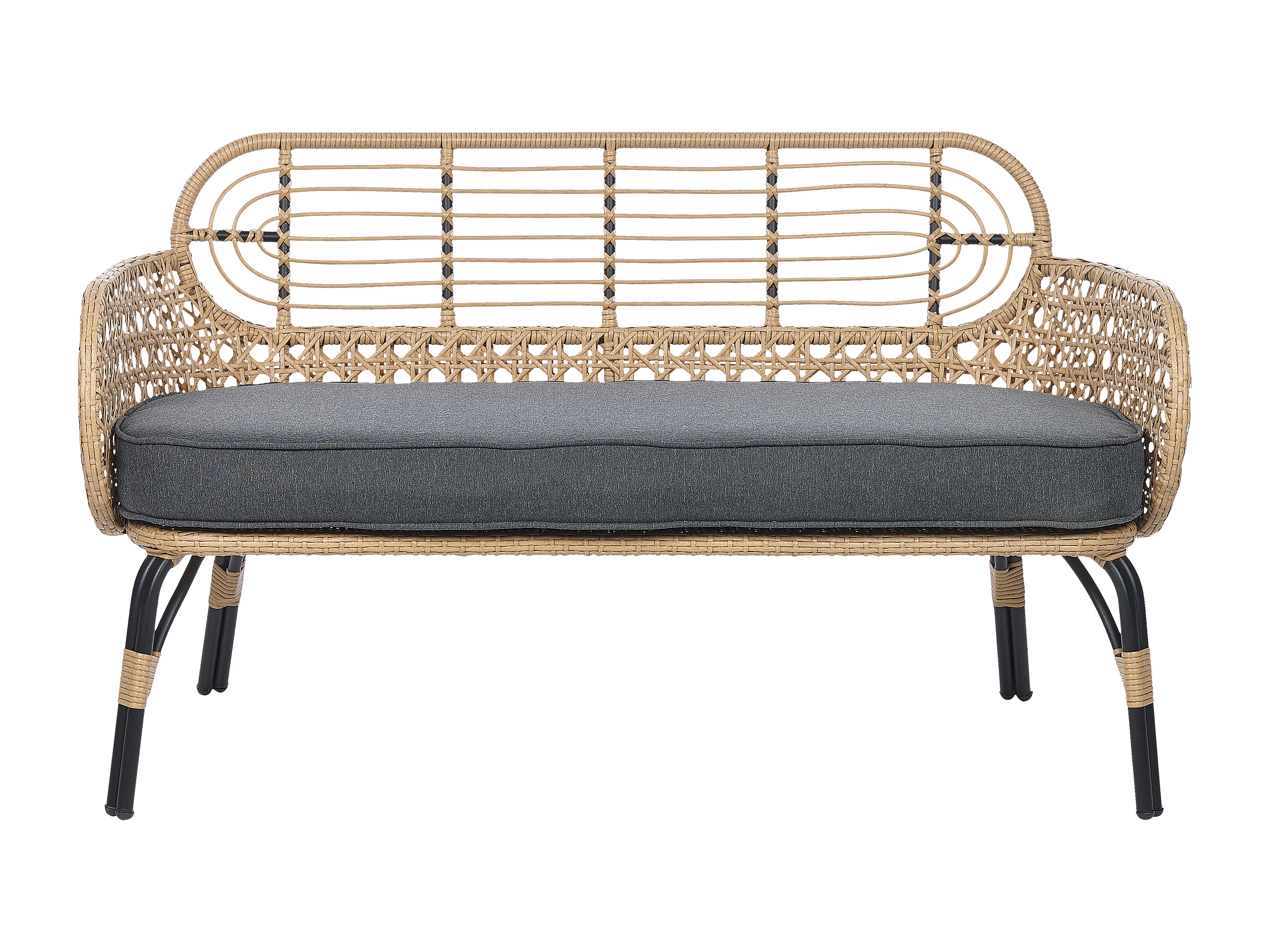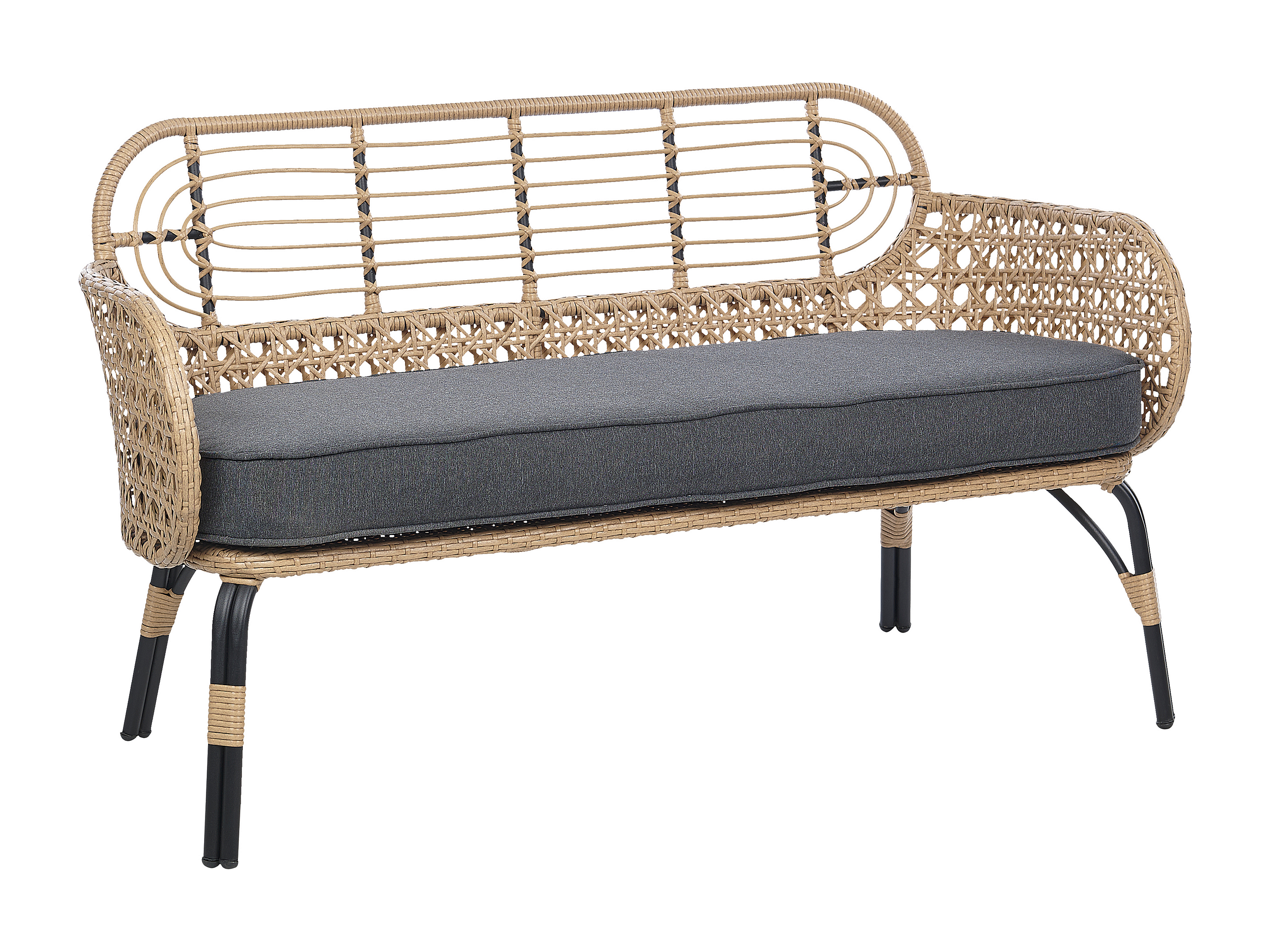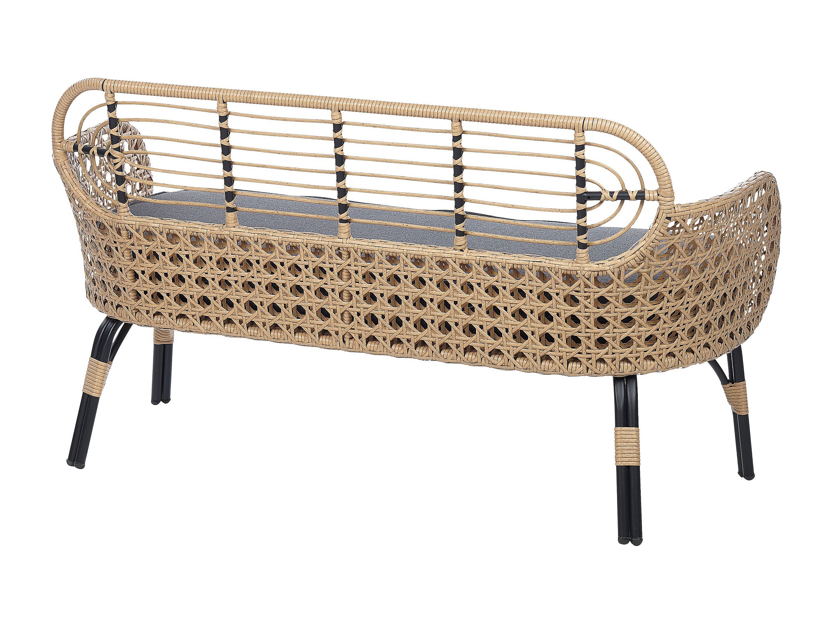 Sofa PE Rattan 2-Sitzer mit Sitzkissen Natur Grau geflochten Boho Pratello