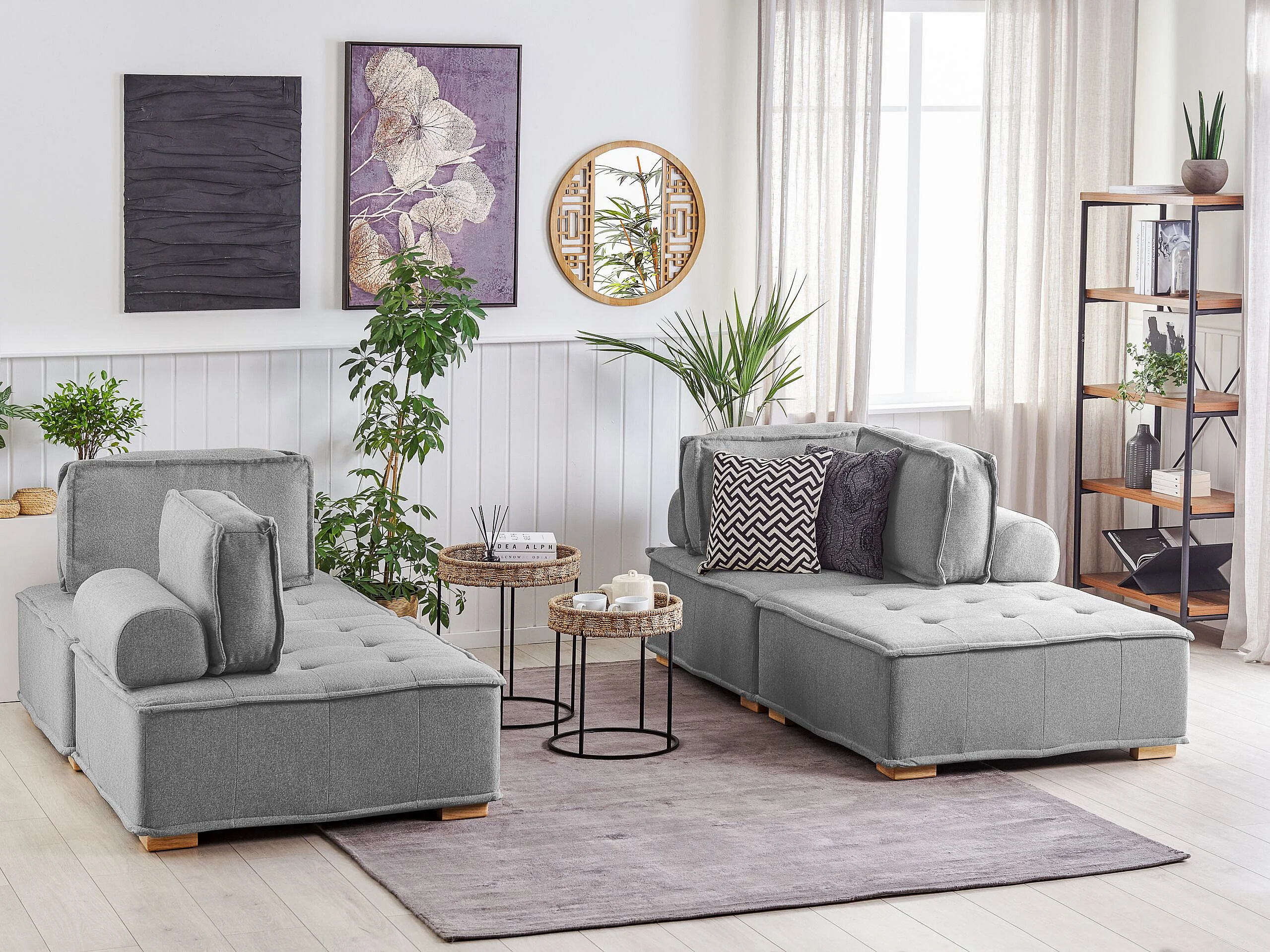 Modulares Sofa Set Polsterbezug grau zwei 2-Sitzer-Sofas mit Kissen Modern Tibro
