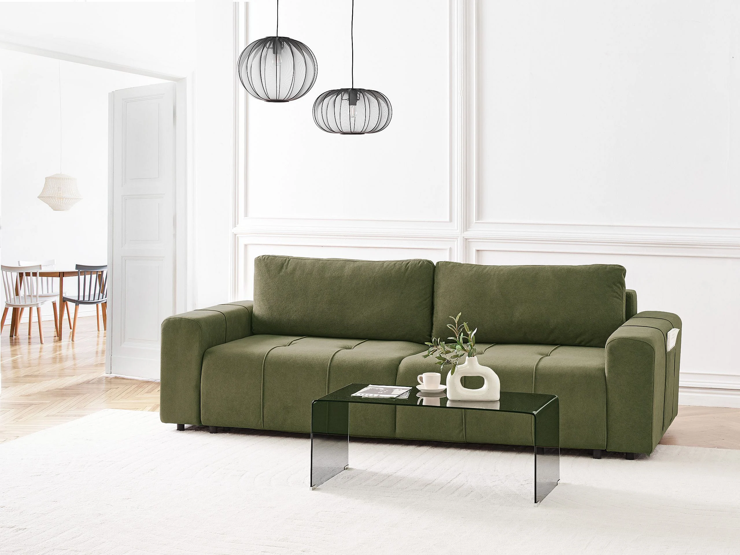 Sofa Stoff grün 3-Sitzer gepolstert mit Schlaffunktion und Stauraum Innvik